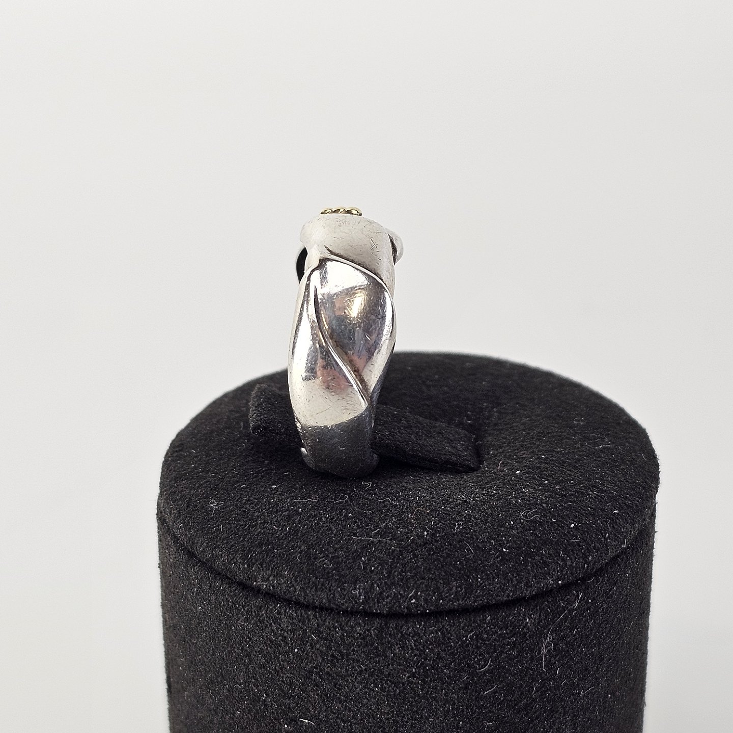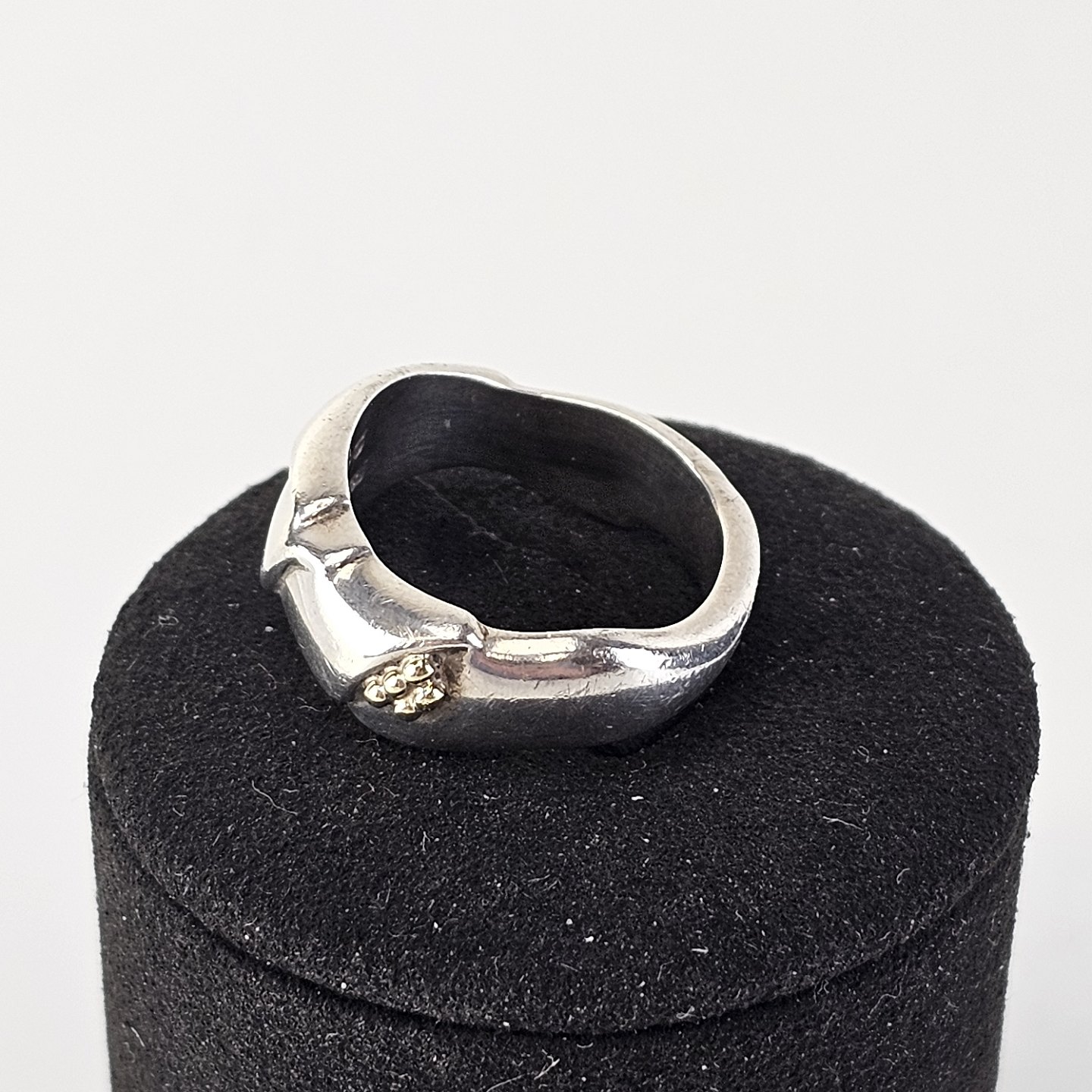 Fingerring i sterling sølv med dekoration i 18 kt guld