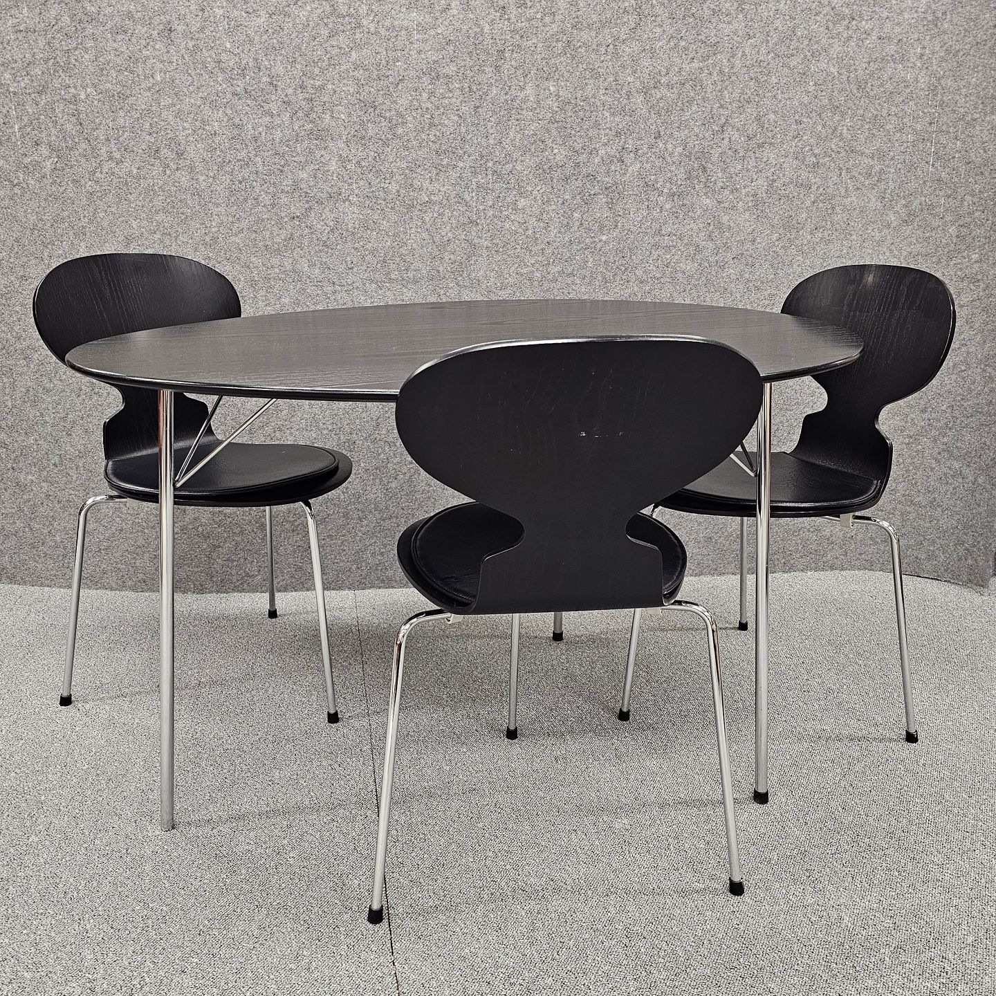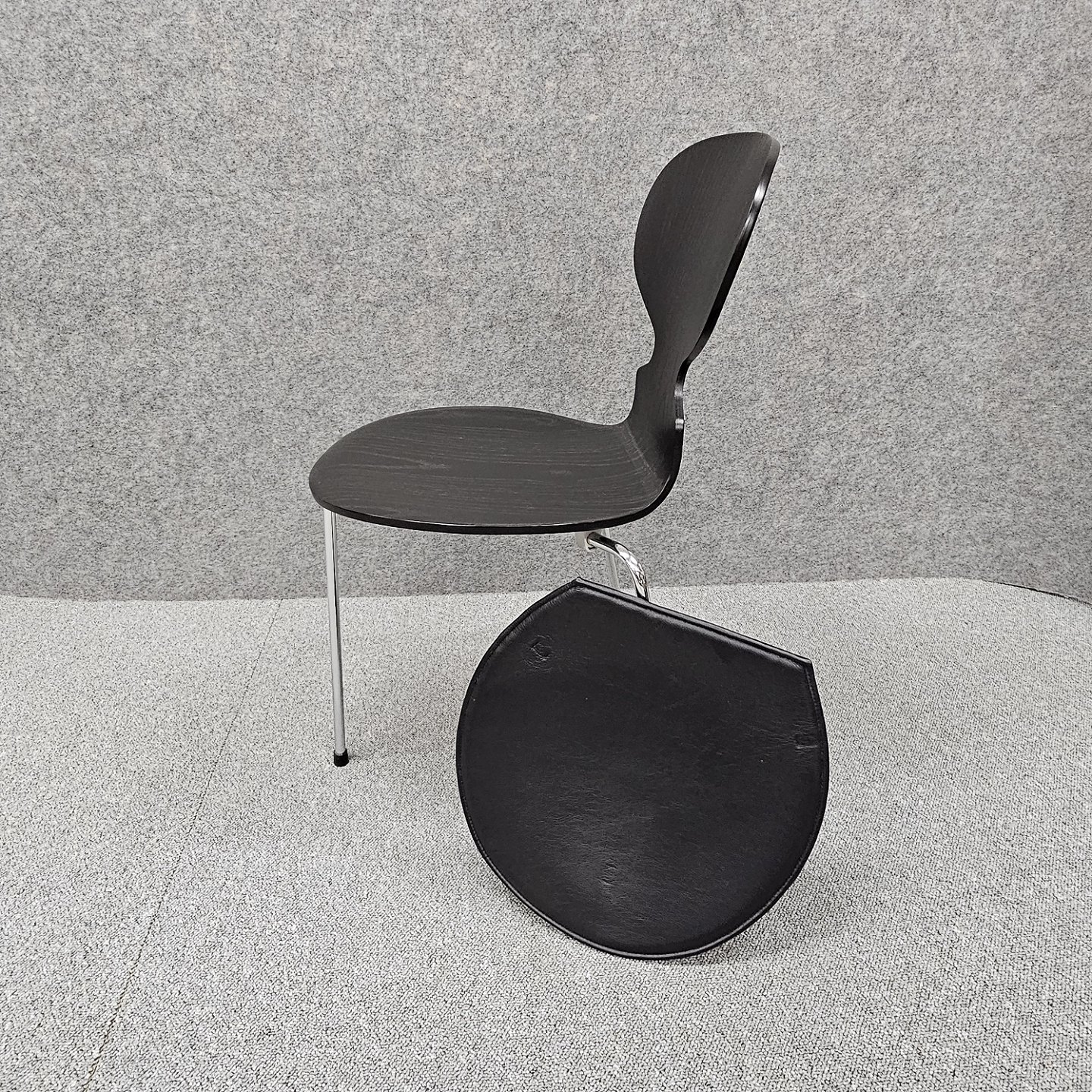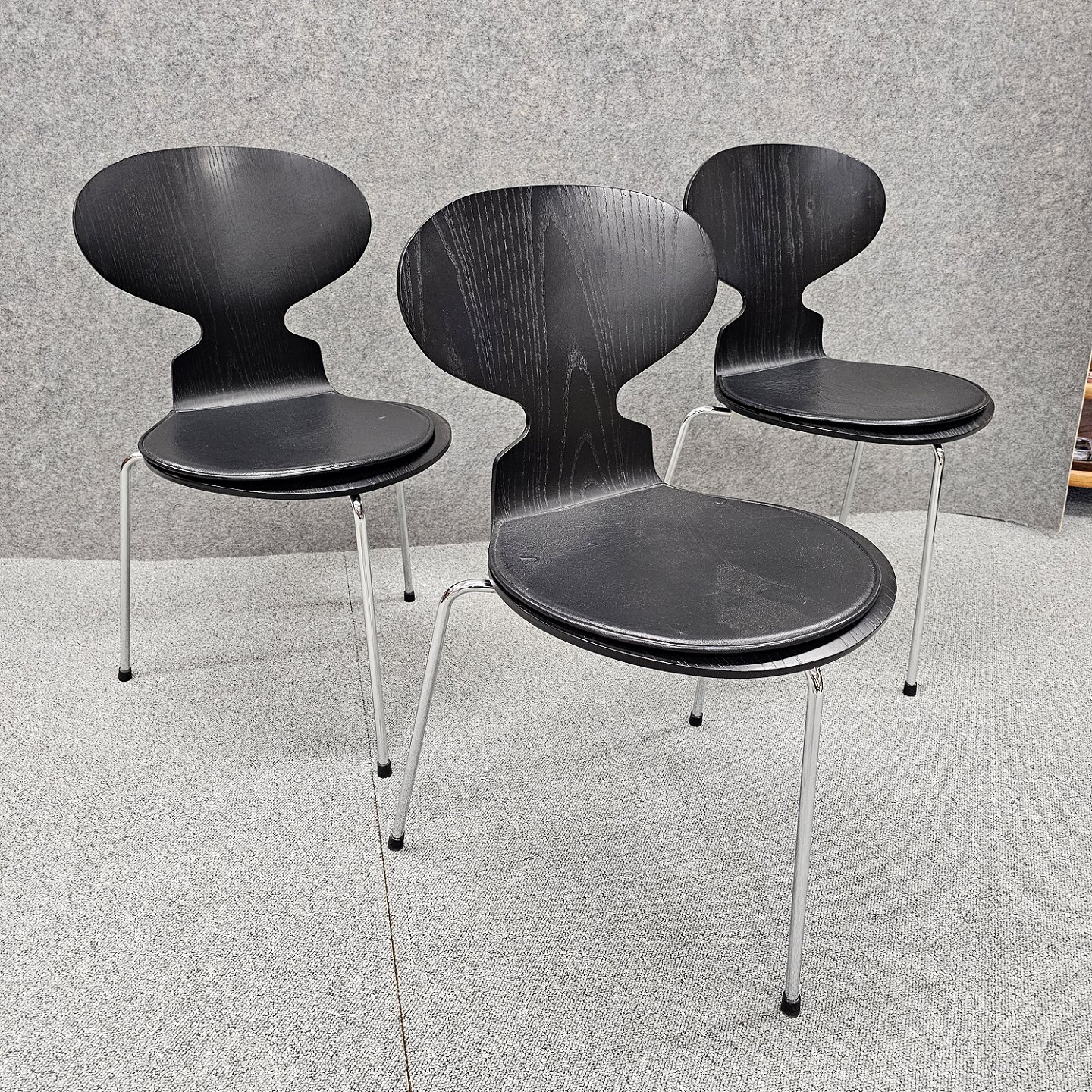 Tre stole, Myren, model 3100 af sortlakeret eg med ben af forkromet stål