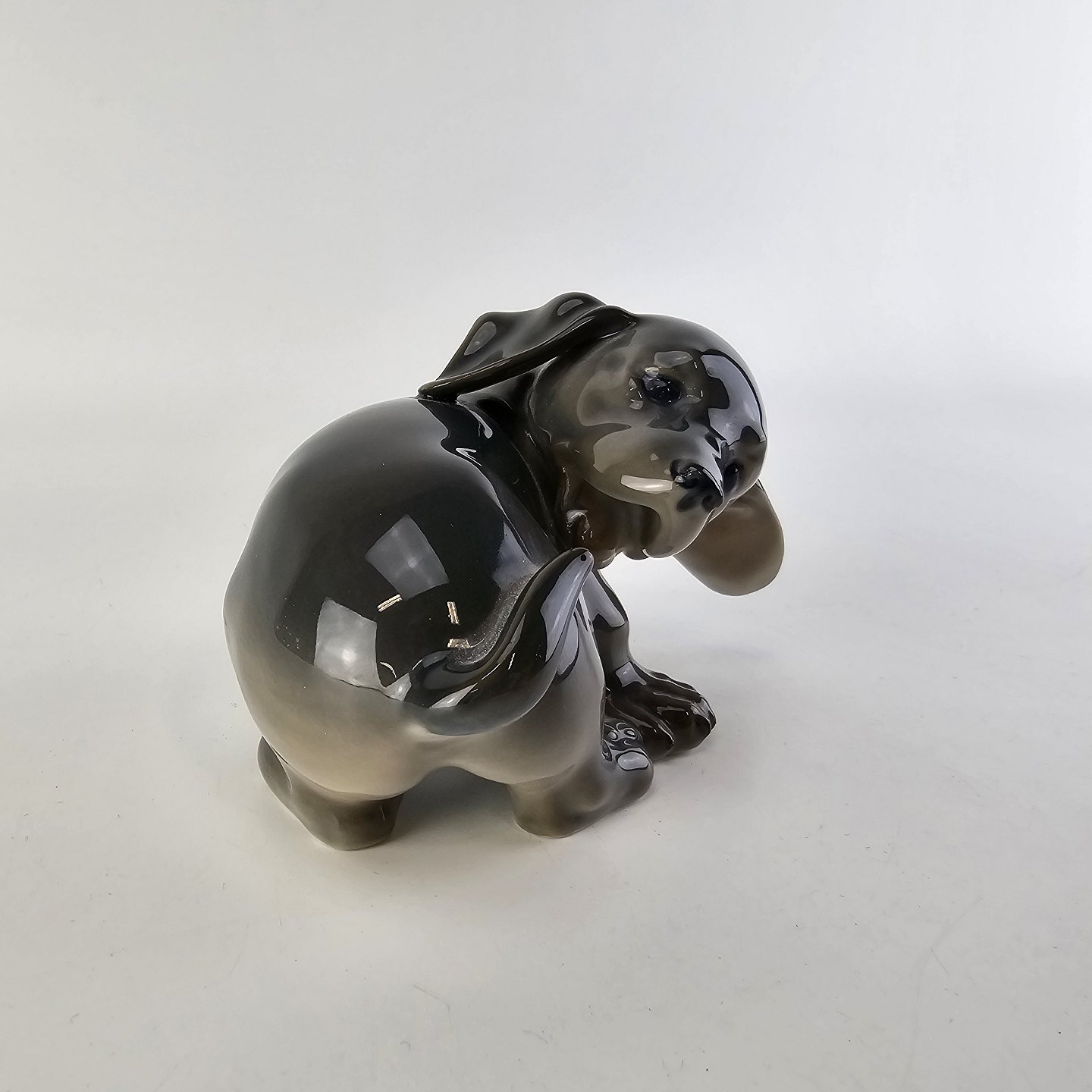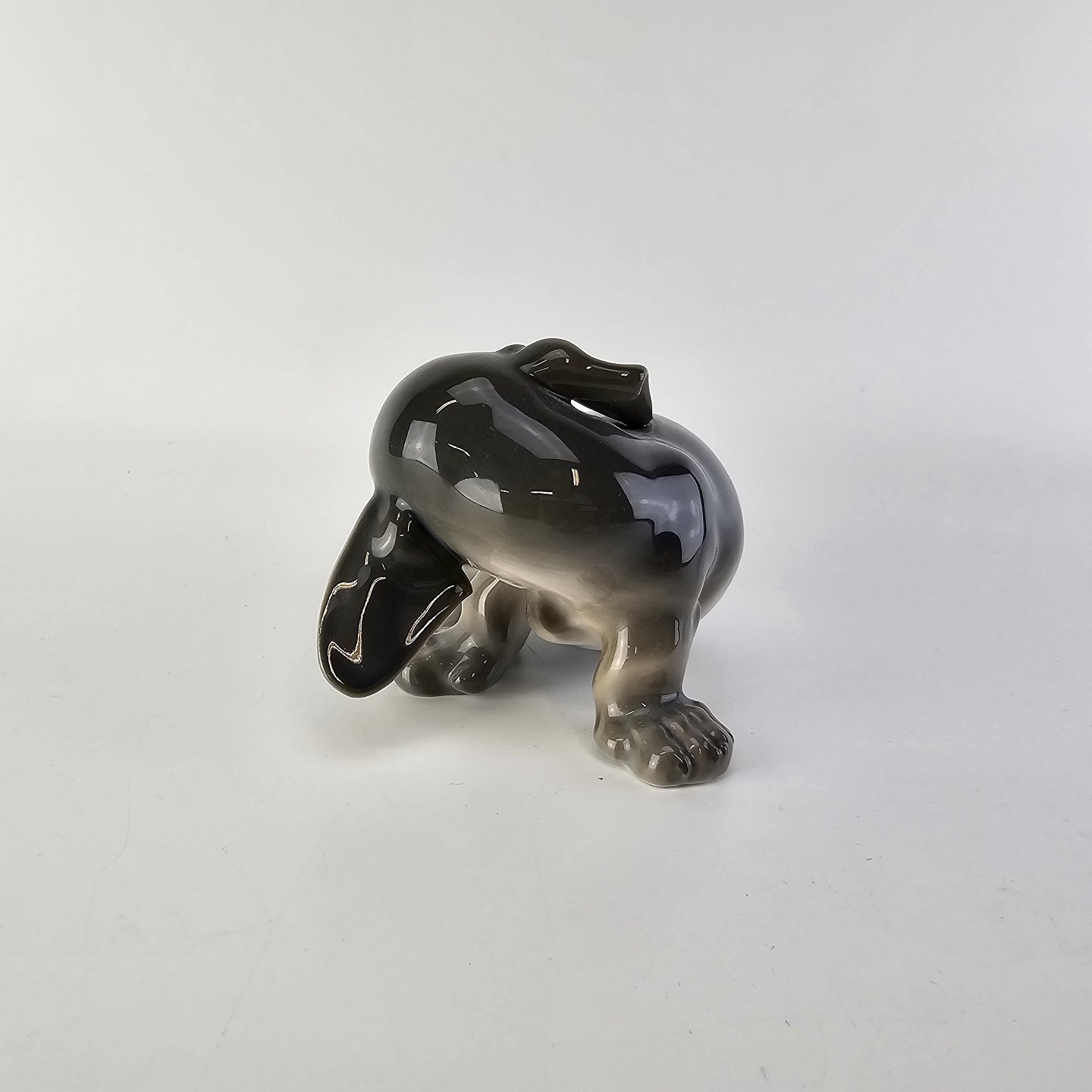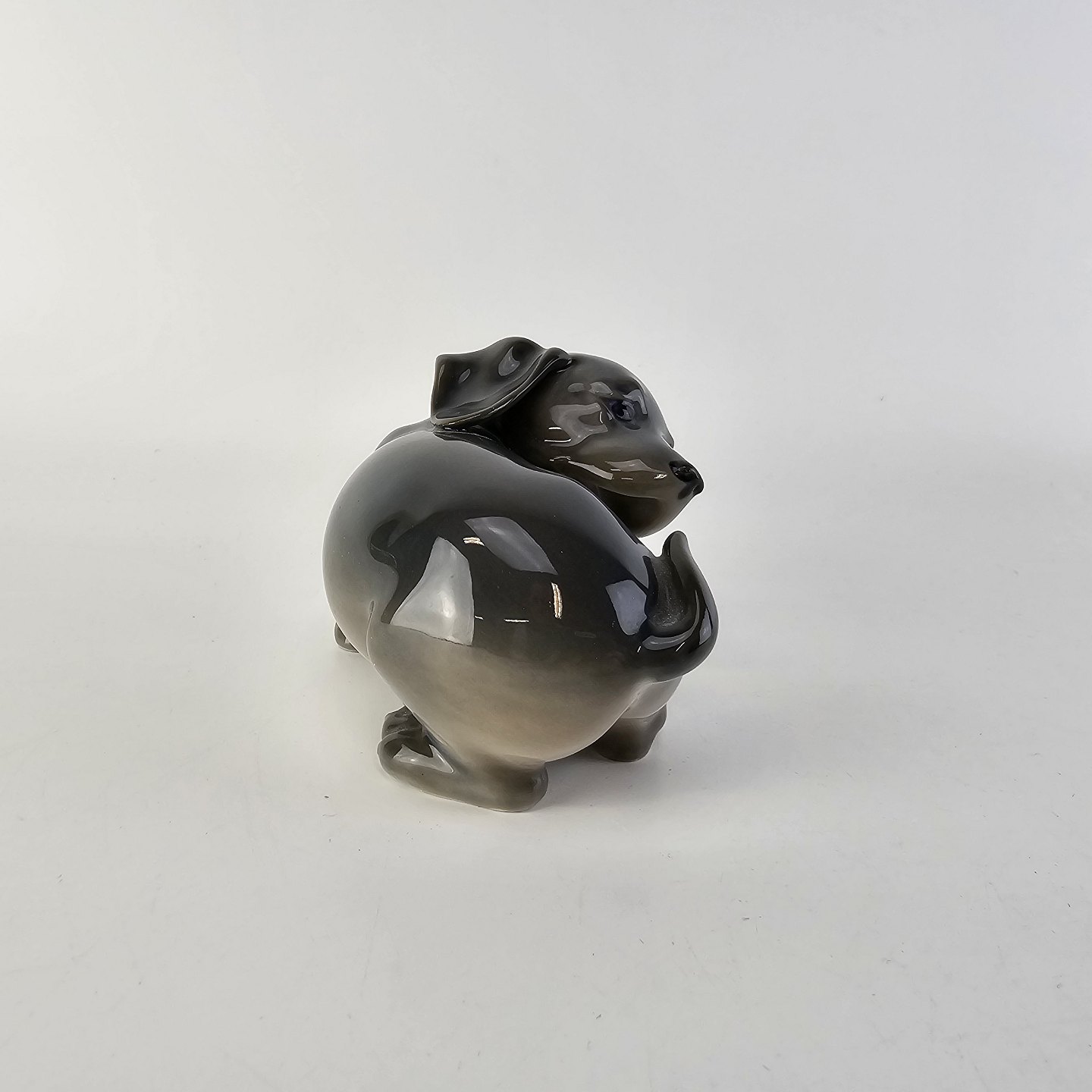 Kongelig figur af porcelæn, med motiv af en gravhund som jagter sin hale. Nr. 1407