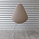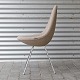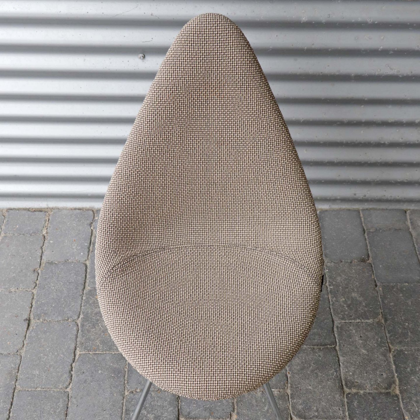 Spisebordsstol med ben i rustfrit stål og polstret sæde betrukket med struktureret stof i beige og sort. Model Dråben nr. 3110