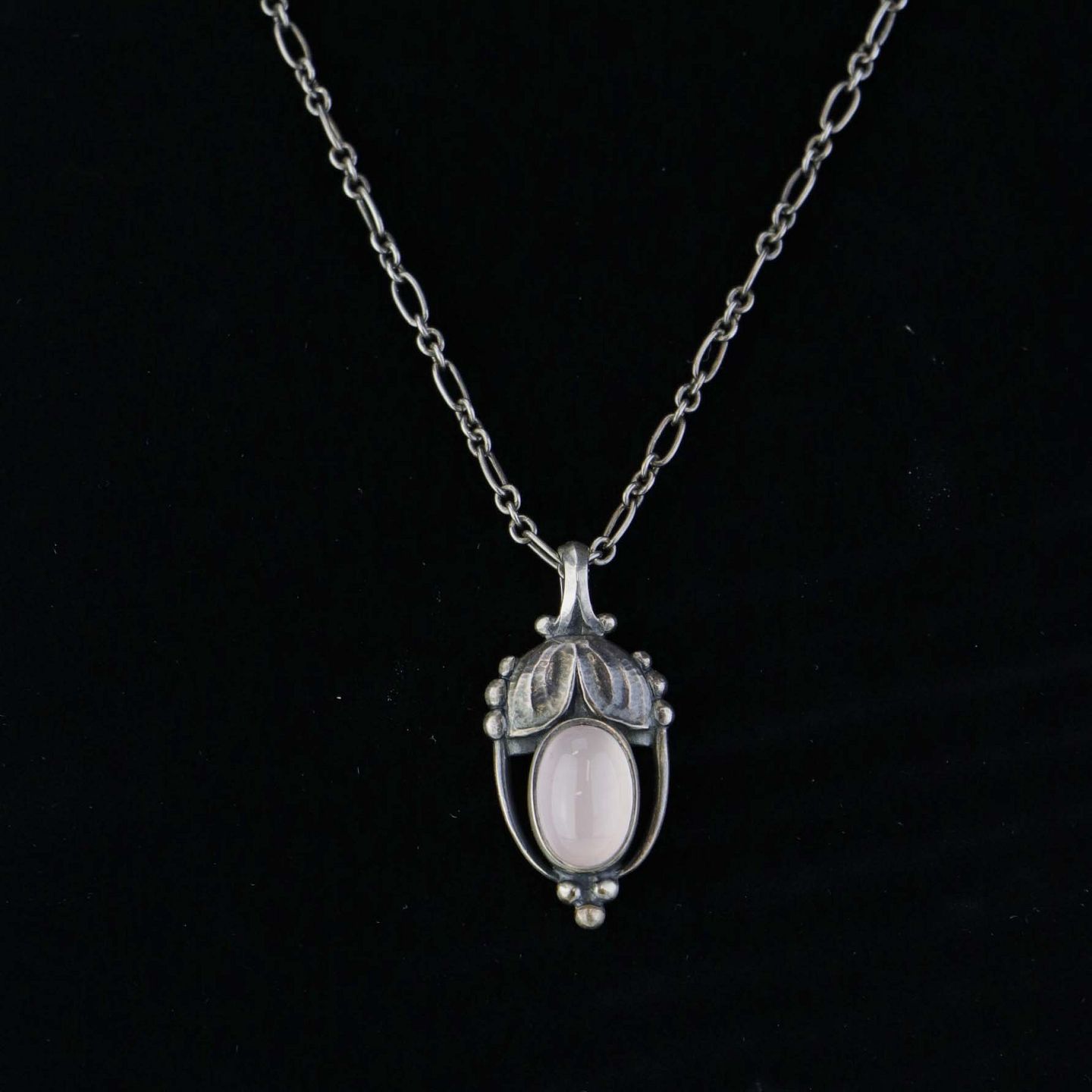 Halskæde i sterling sølv med indsat rosenkvarts fra serien Heritage. Årssmykke 2003.