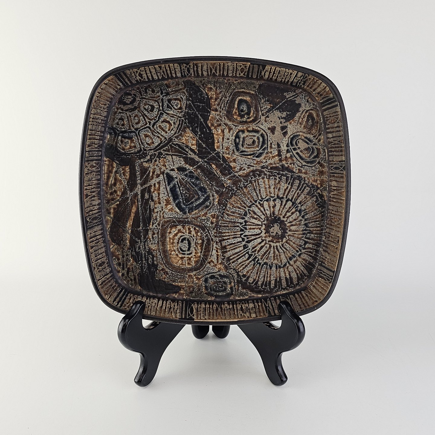 Firkantet skål i fajance fra Baca serien med mønster i brune nuancer