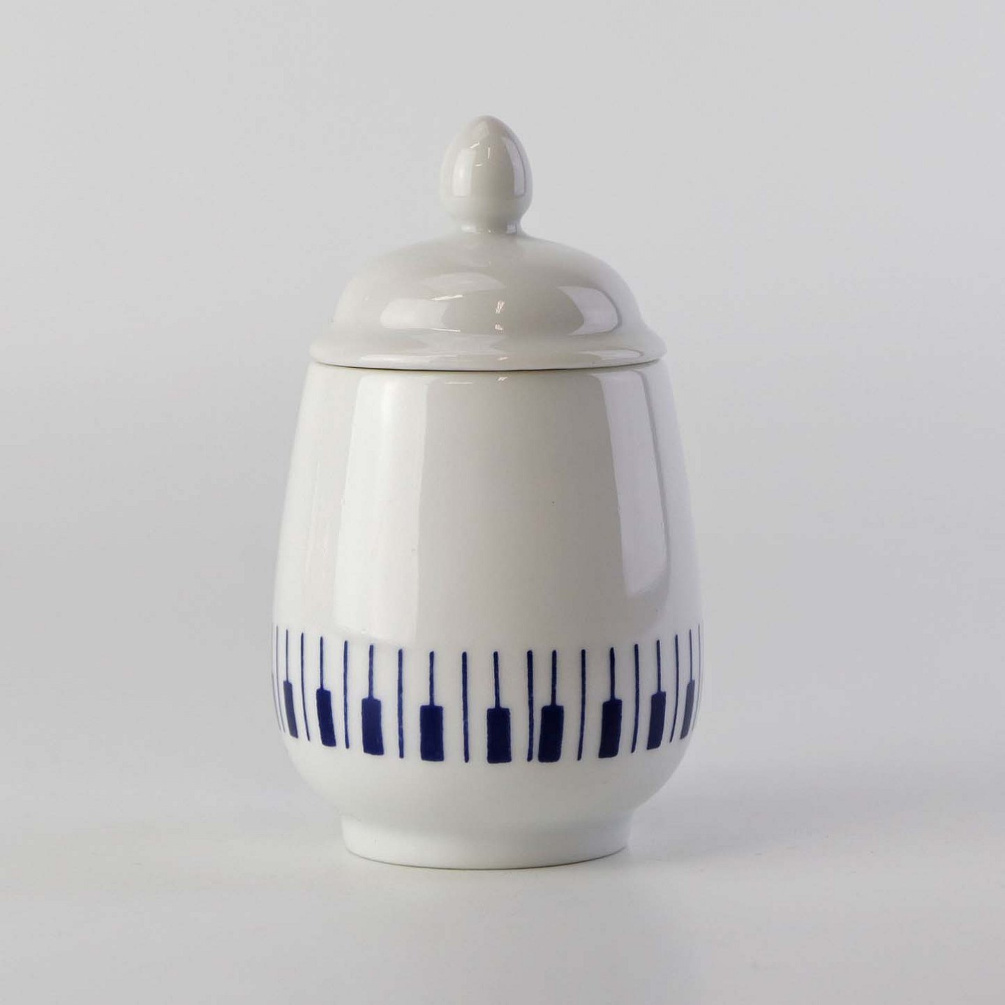 Krukke til sennep med låg i porcelæn fra stellet Danild 64 - også kendt under navnet Tangent.
