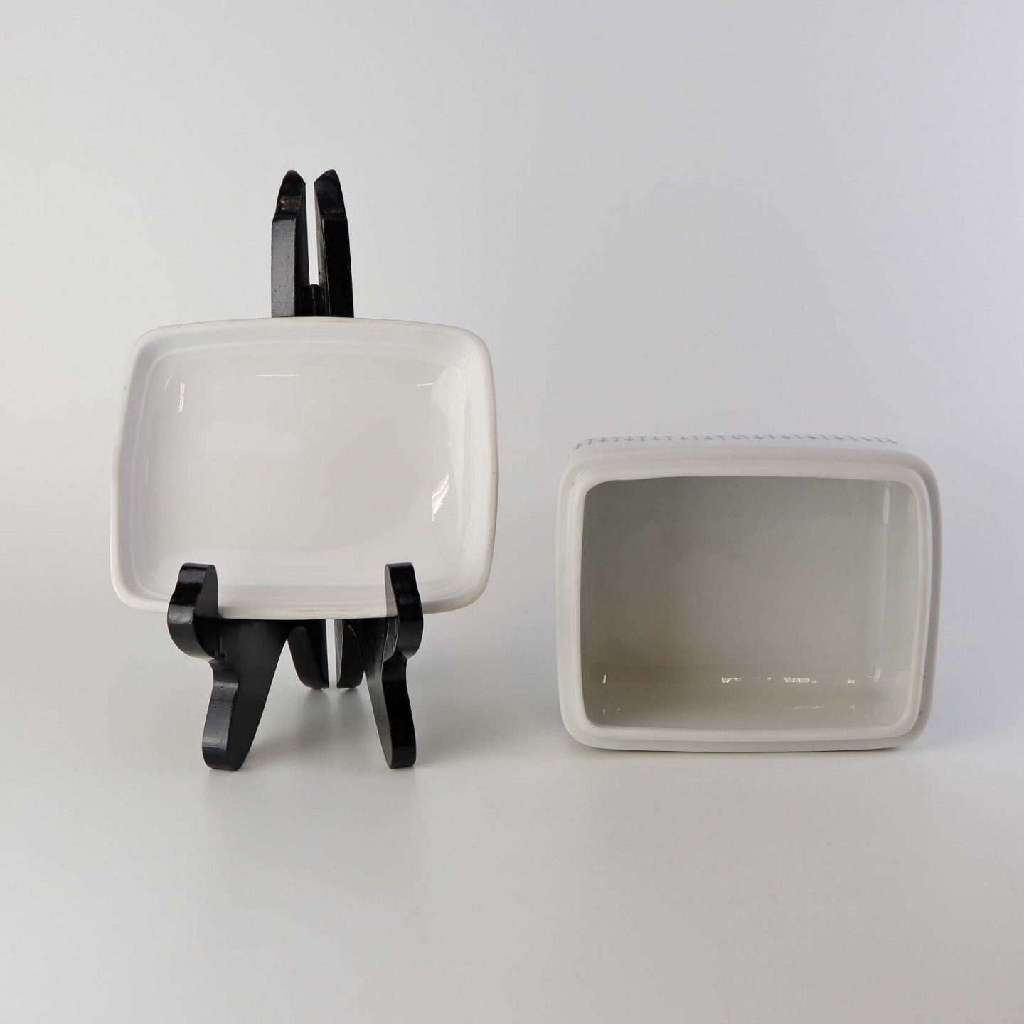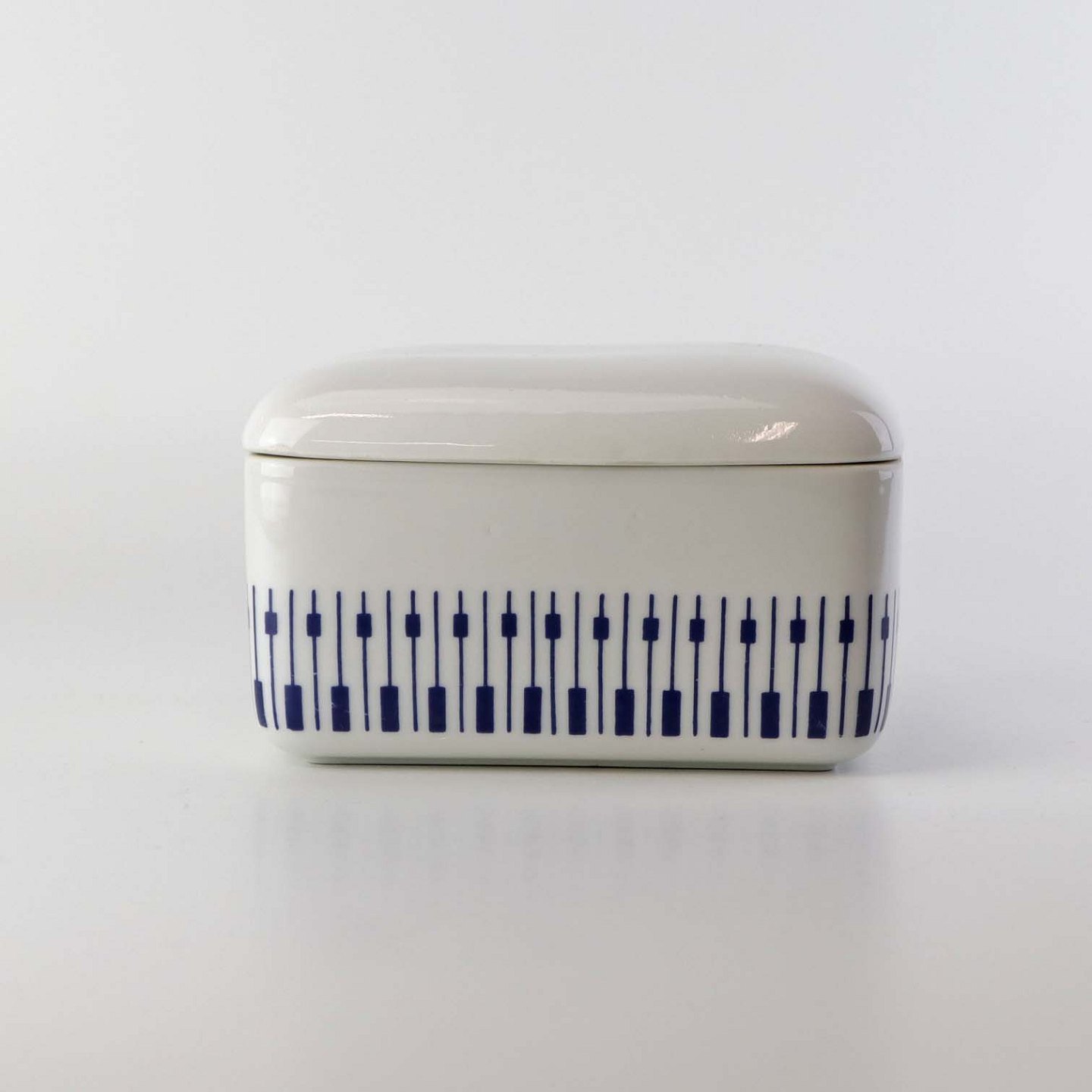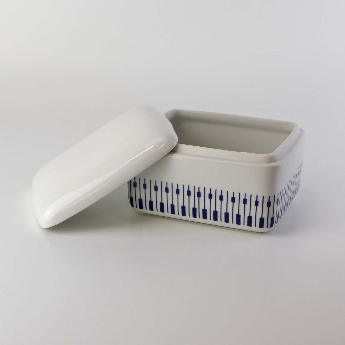 Boks til smør med låg i porcelæn fra stellet Danild 64 - også kendt under navnet Tangent. Nr. 139