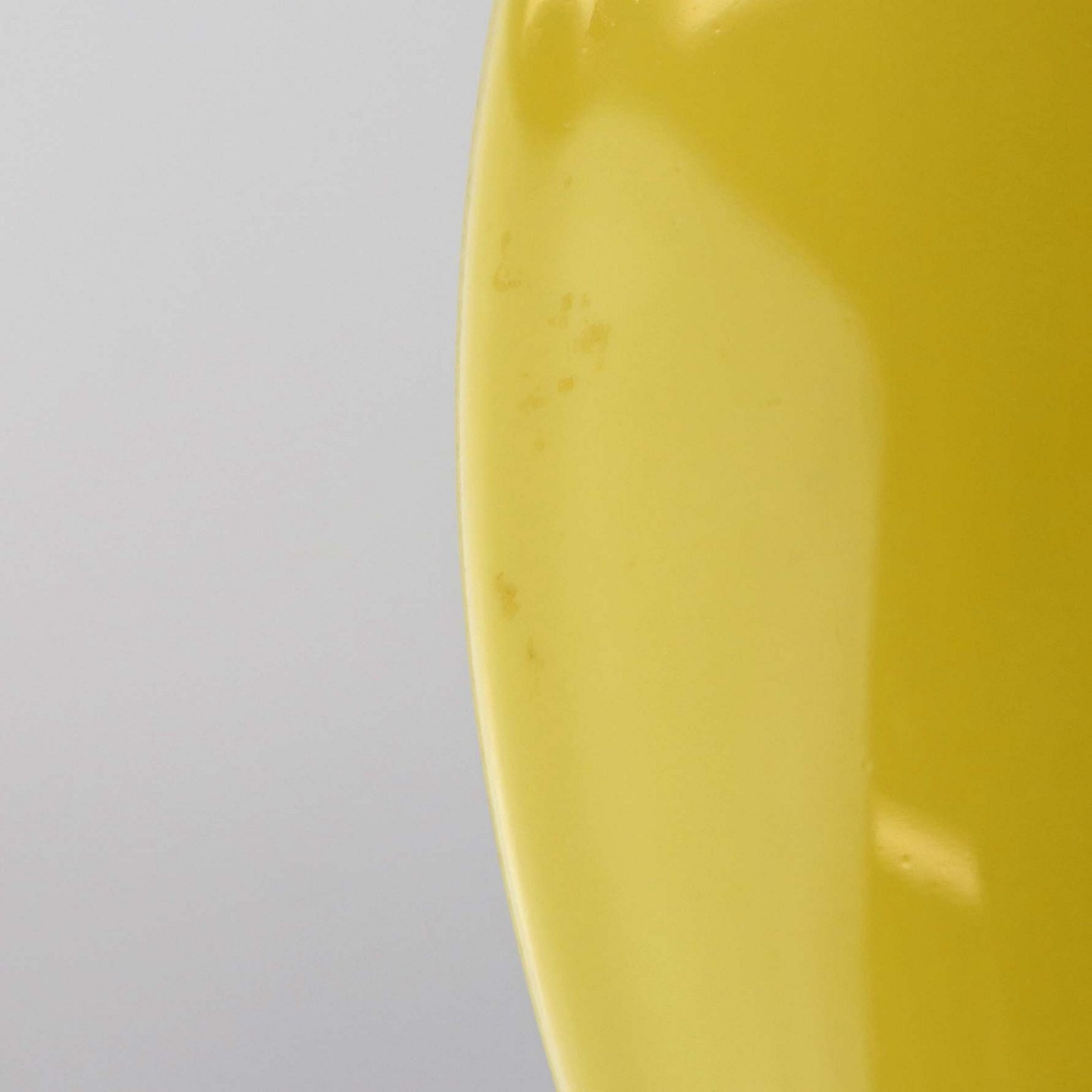 Stellet er fremstillet i ildfast glat porcelæn dekoreret med gul glaseret yderside og hvid glaseret inderside.