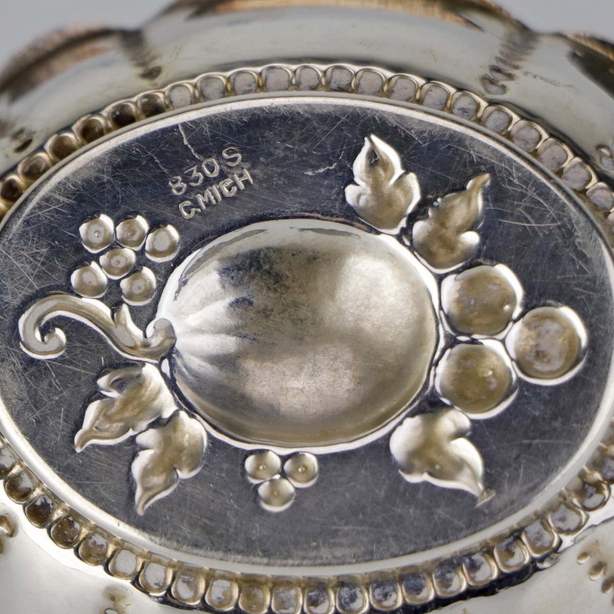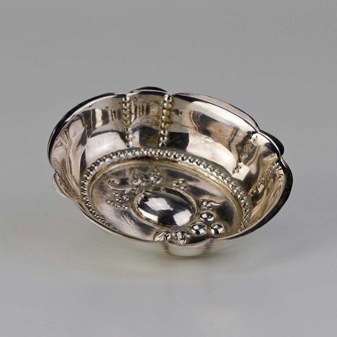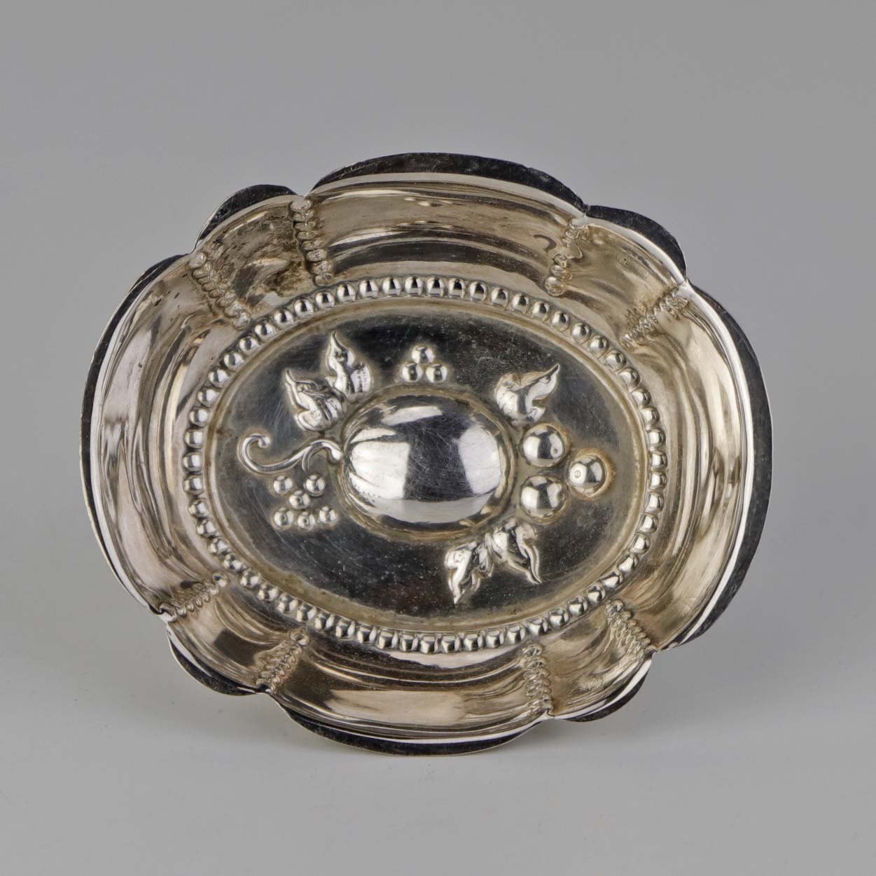 Lille kar i 830 sølv med motiv af frugt, bær og blade.