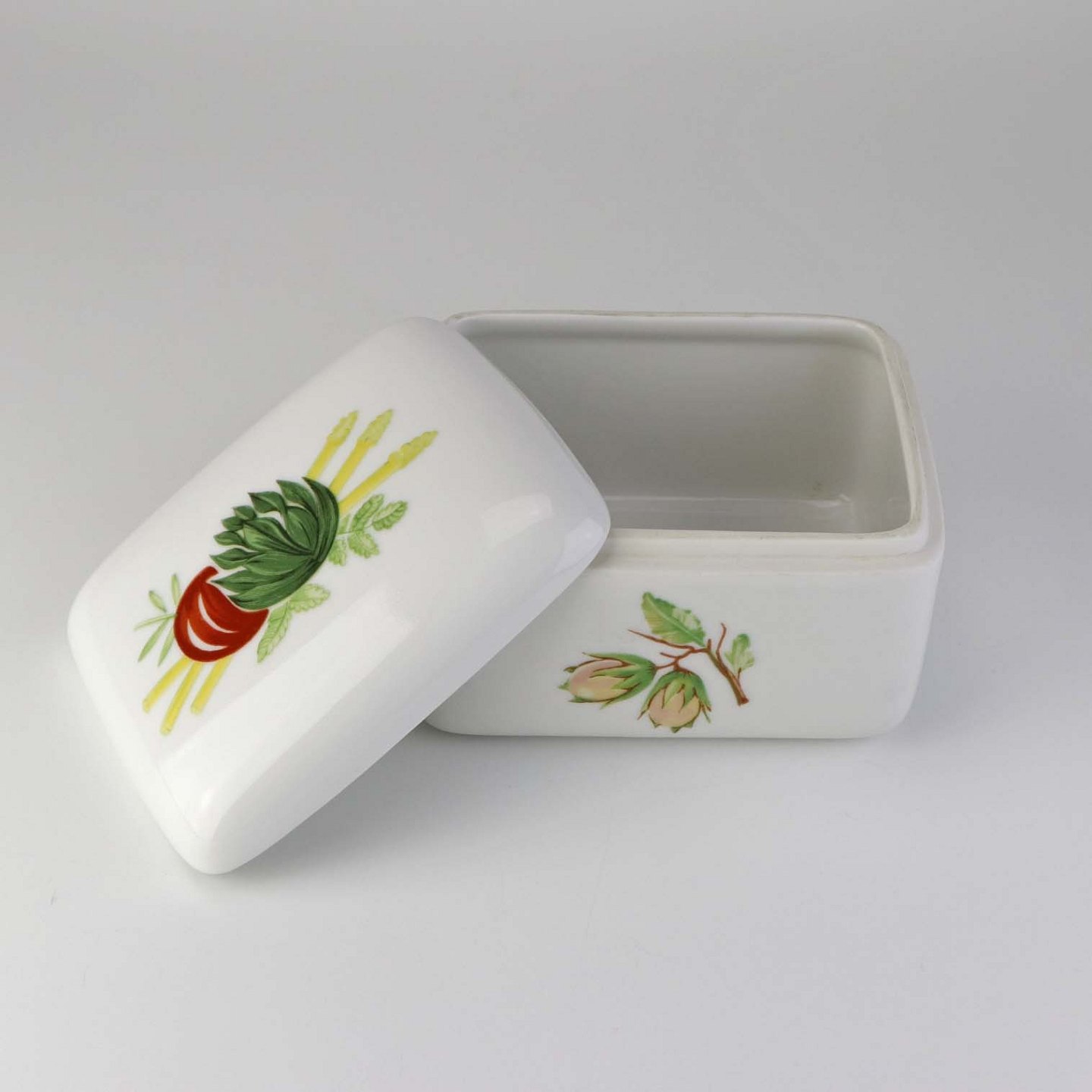 Opbevaringsboks til smør i porcelæn fra stellet Danild 50 Frugt og grønt - også kendt som Picnic stellet.