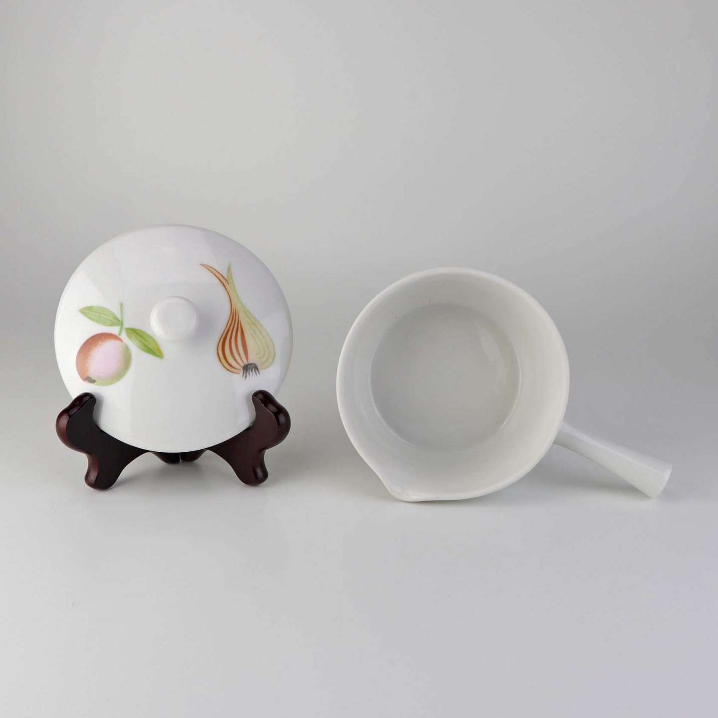 Smørnæb med hank og låg i porcelæn fra stellet Danild 50 Frugt og grønt - også kendt som Picnic stellet.