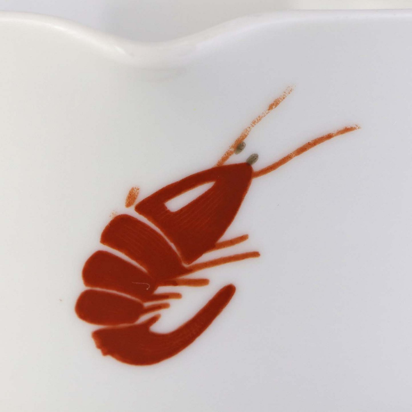 Stellet er i glat hvidt porcelæn med varierende farverige motiver af frugter og grønt.
