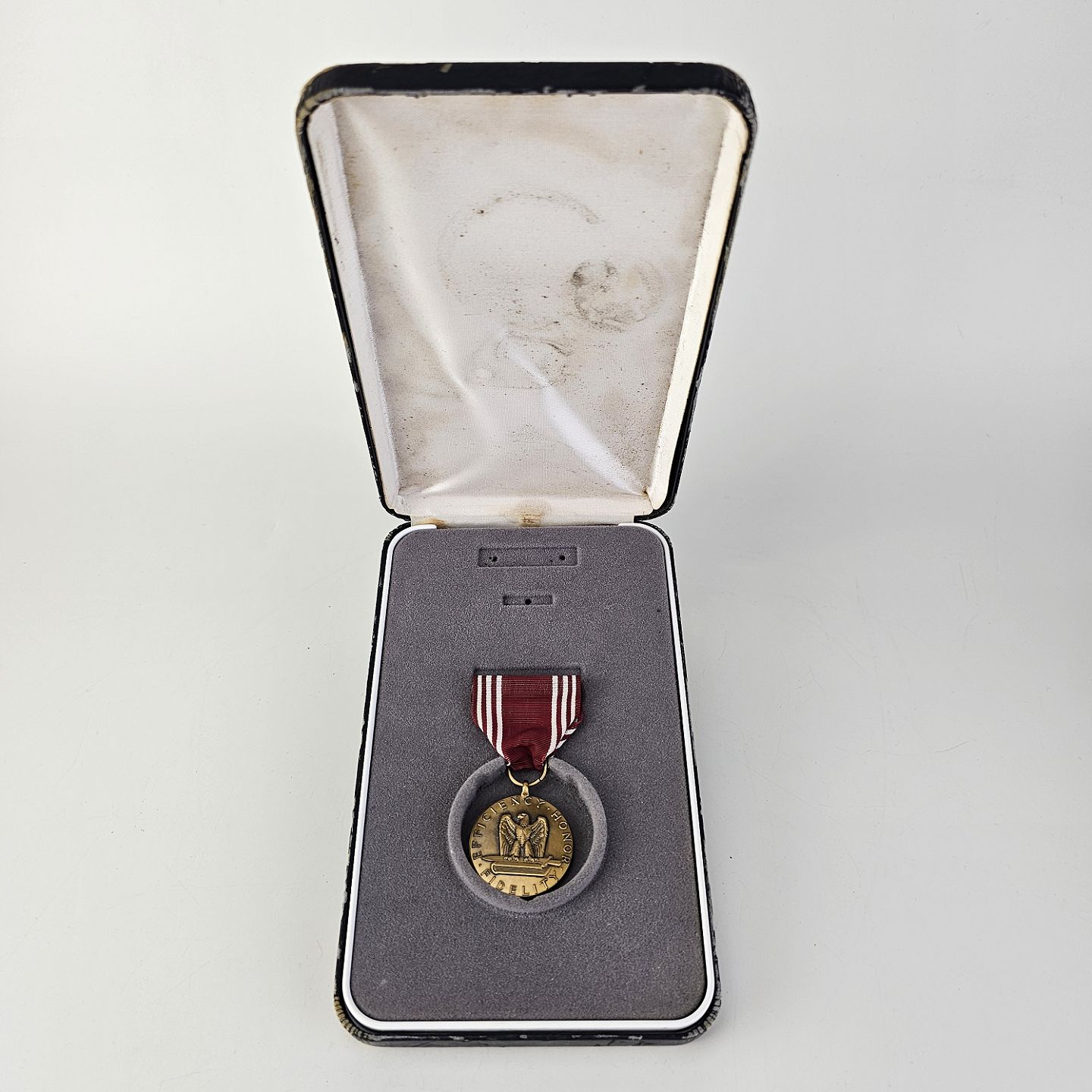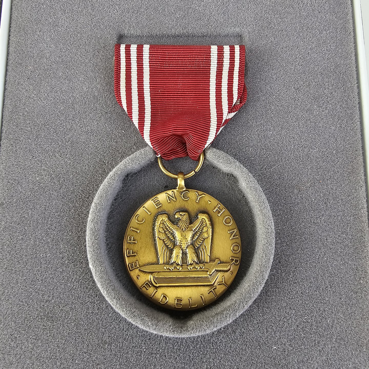Amerikansk bronze medalje med motiv af en ørn og teksten Efficiency Honor Fidelity på forsiden og For Good Conduct på bagsiden