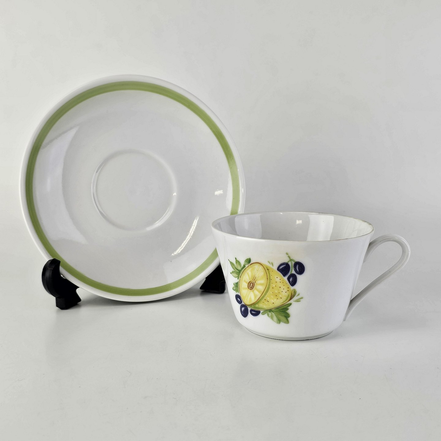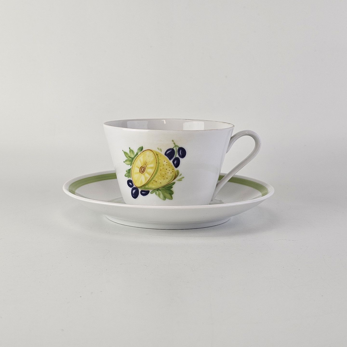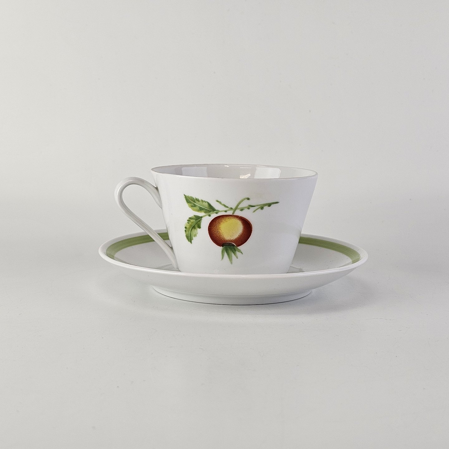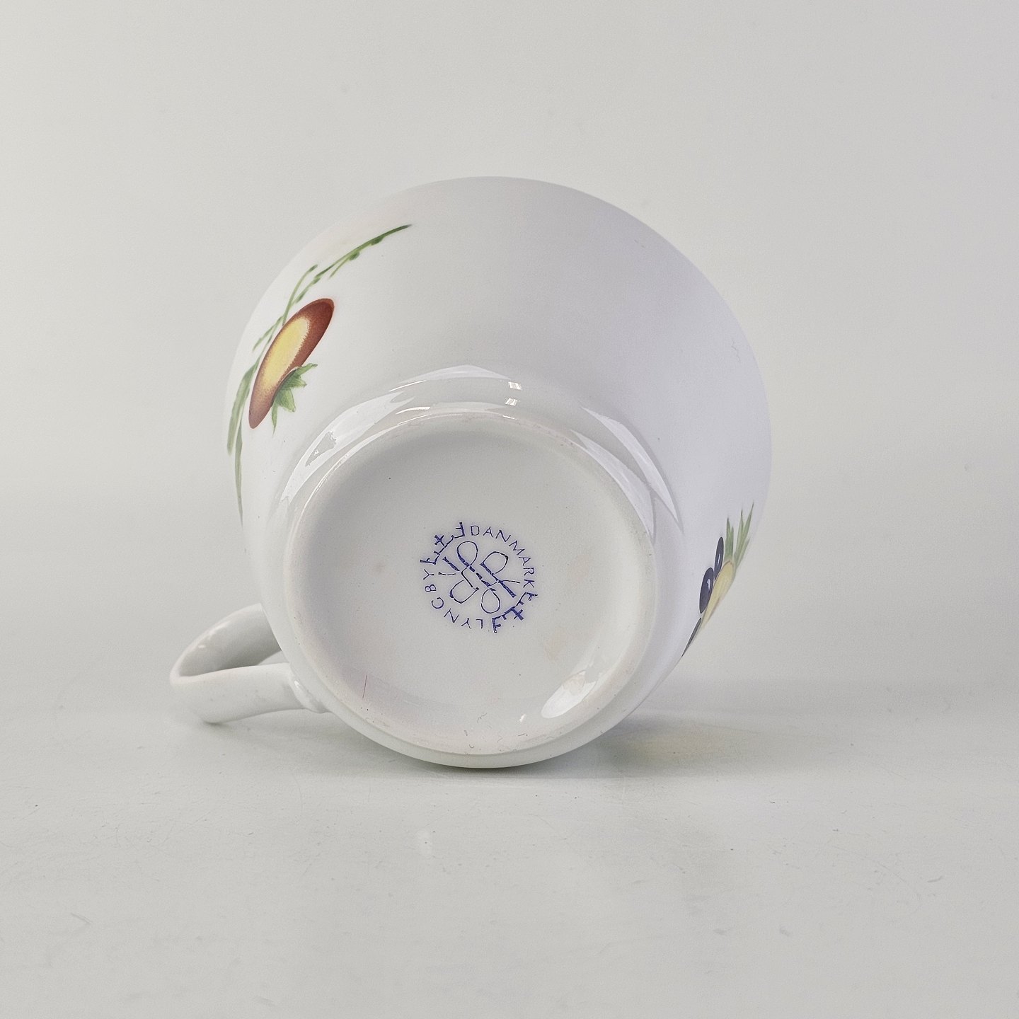 Kop med underkop i porcelæn fra stellet Danild 50 Frugt og grønt - også kendt som Picnic stellet