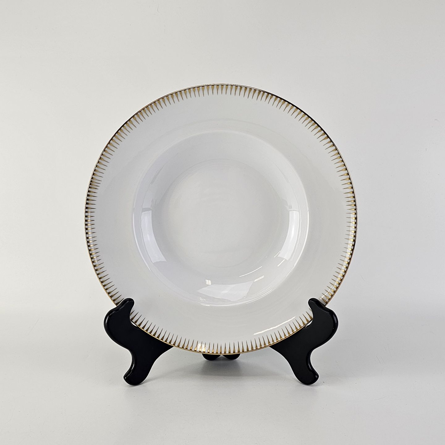 Hvidt porcelæn dekoreret med guld motiv og guldkant