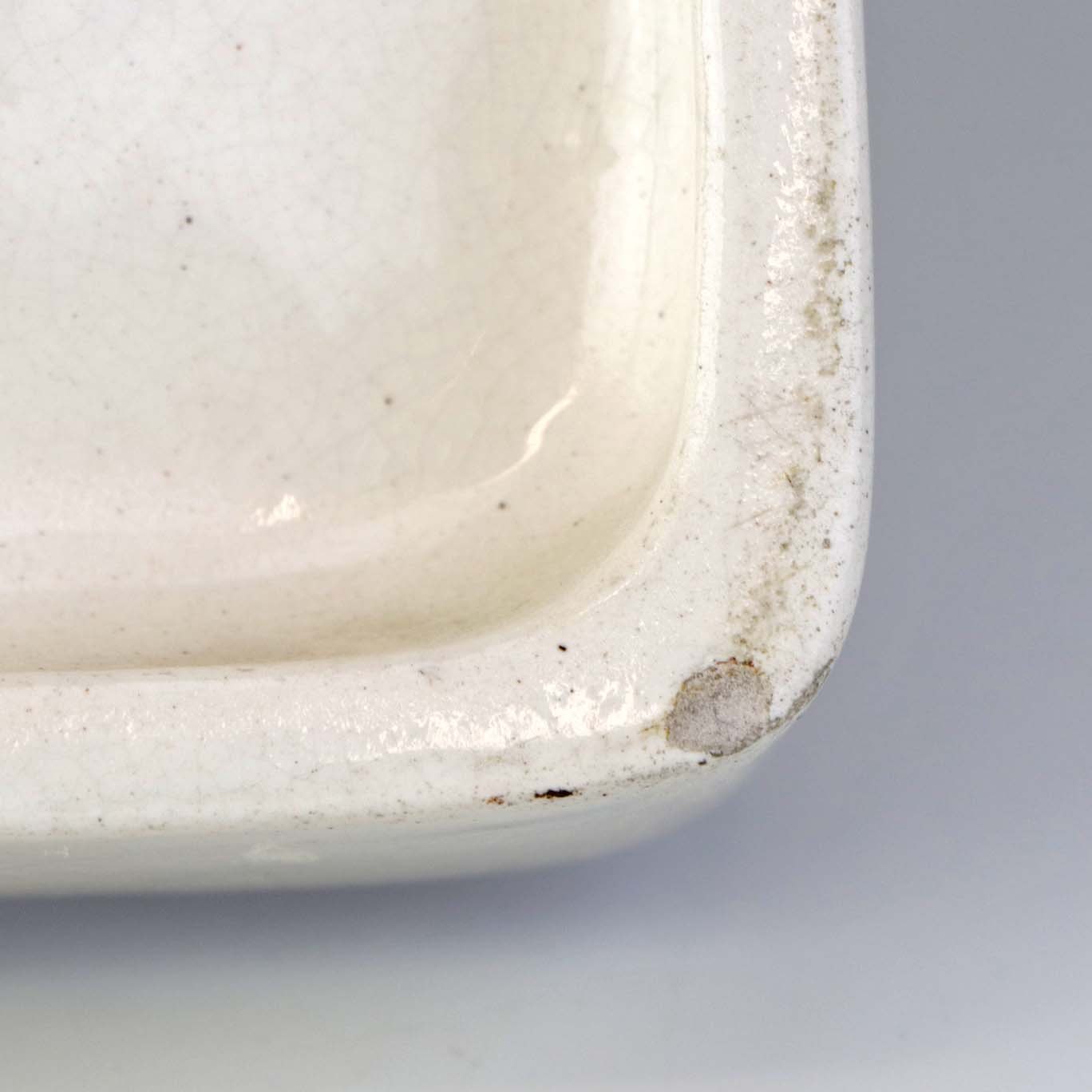 Fremstår med et enkelt afslag på forsiden samt et enkelt afslag på bagsiden og krakkeleringer i fajancen.