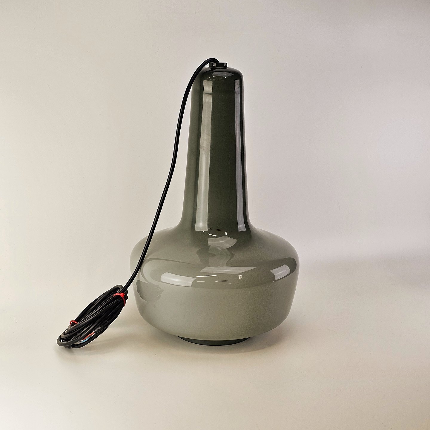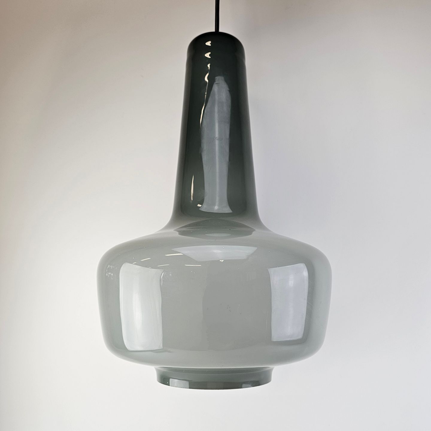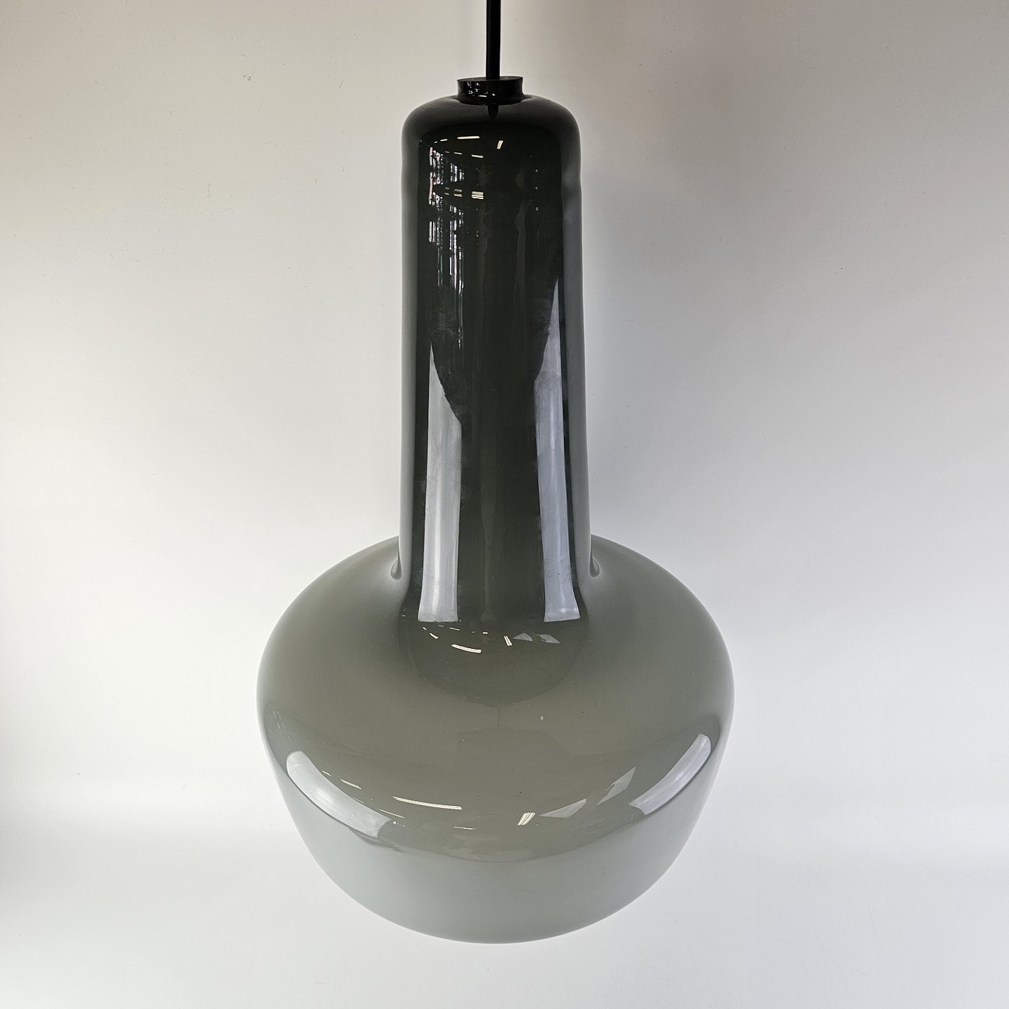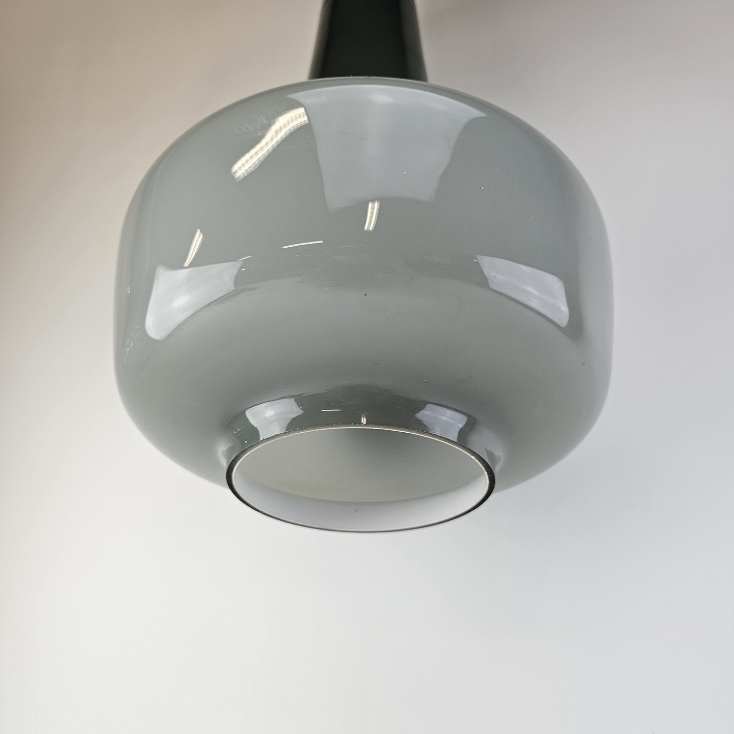 Pendel i opal glas, grågrøn by ydersiden og hvid på indersiden