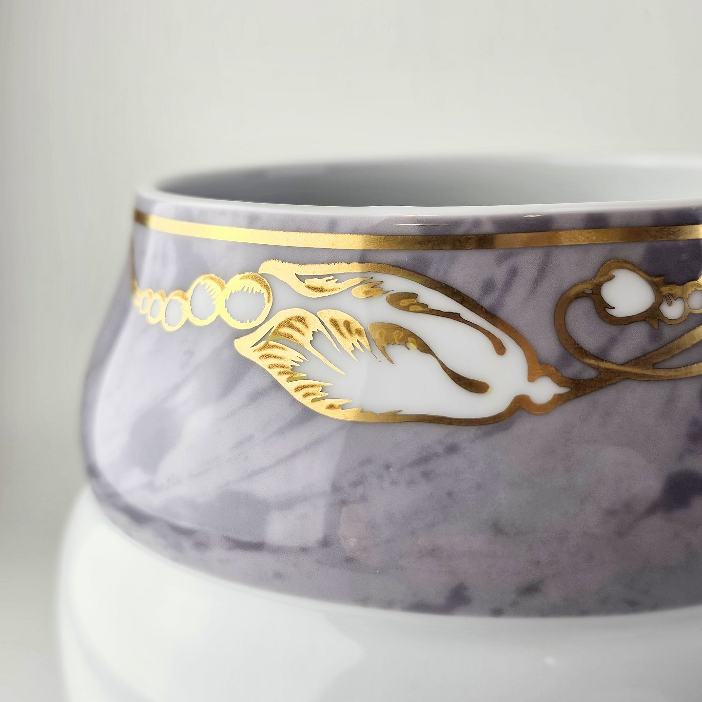 Vase med grå marmoret bort dekoreret med gylden blomsterknop