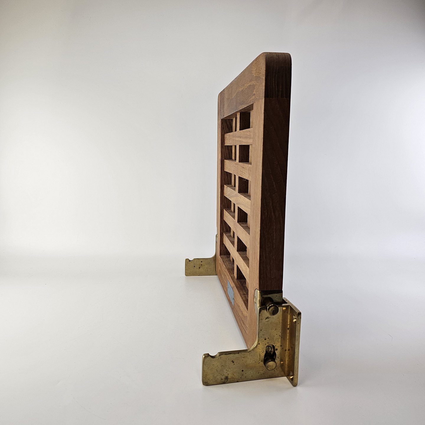 Klapsæde i teak træ med messing beslag til vægmontering fra serien Nautic