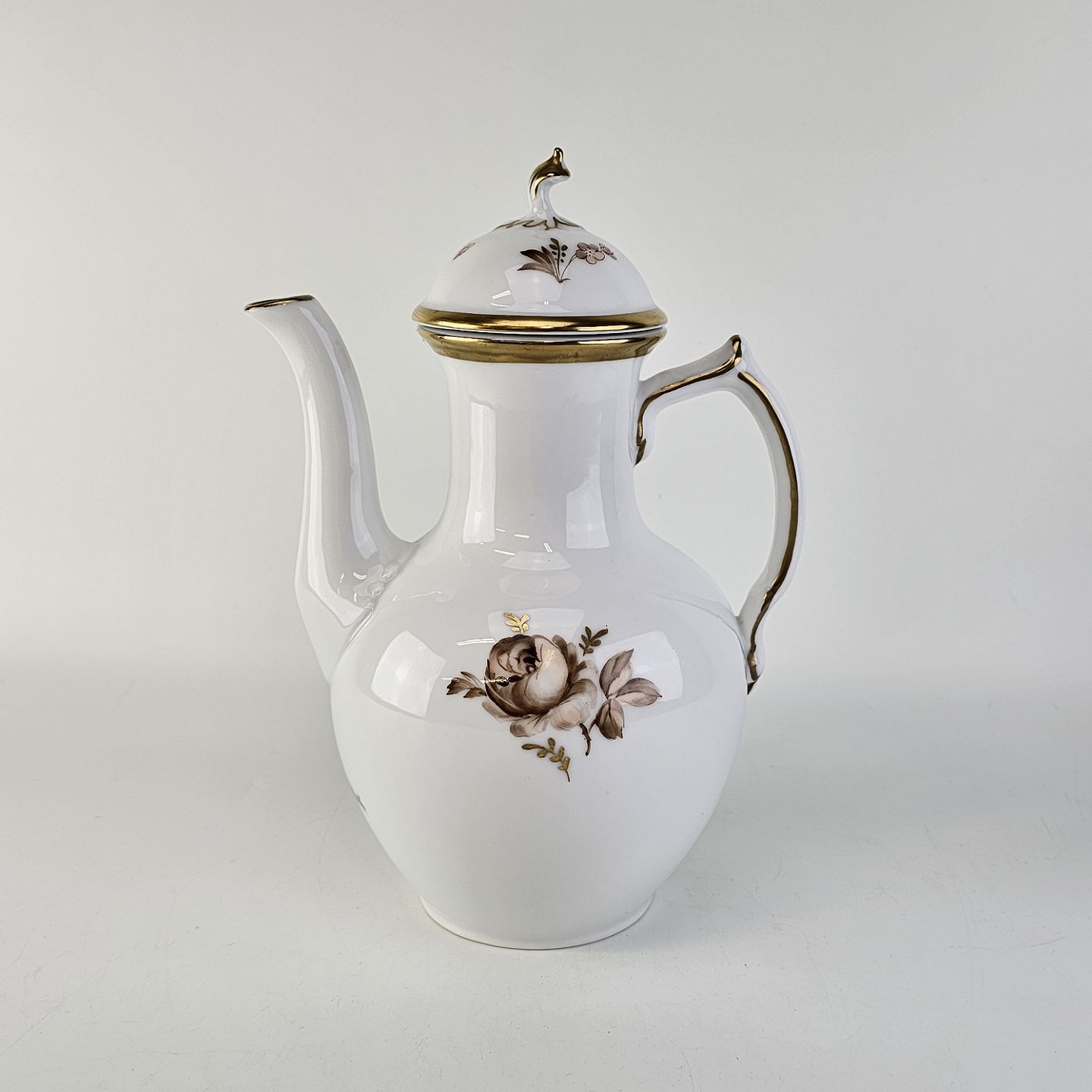 Kaffekande med låg i porcelæn fra stellet Brun Rose