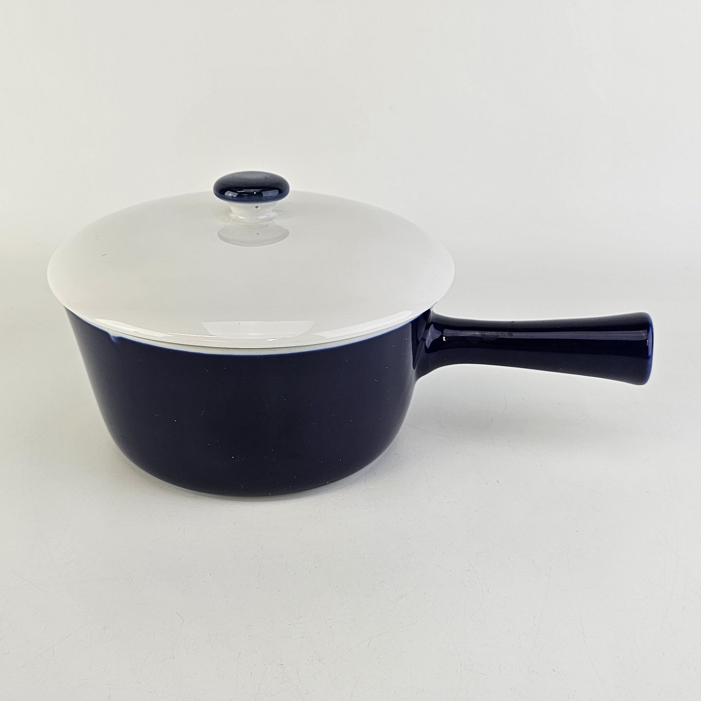 Kasserolle med låg i porcelæn fra stellet Blå Glasurfarvet