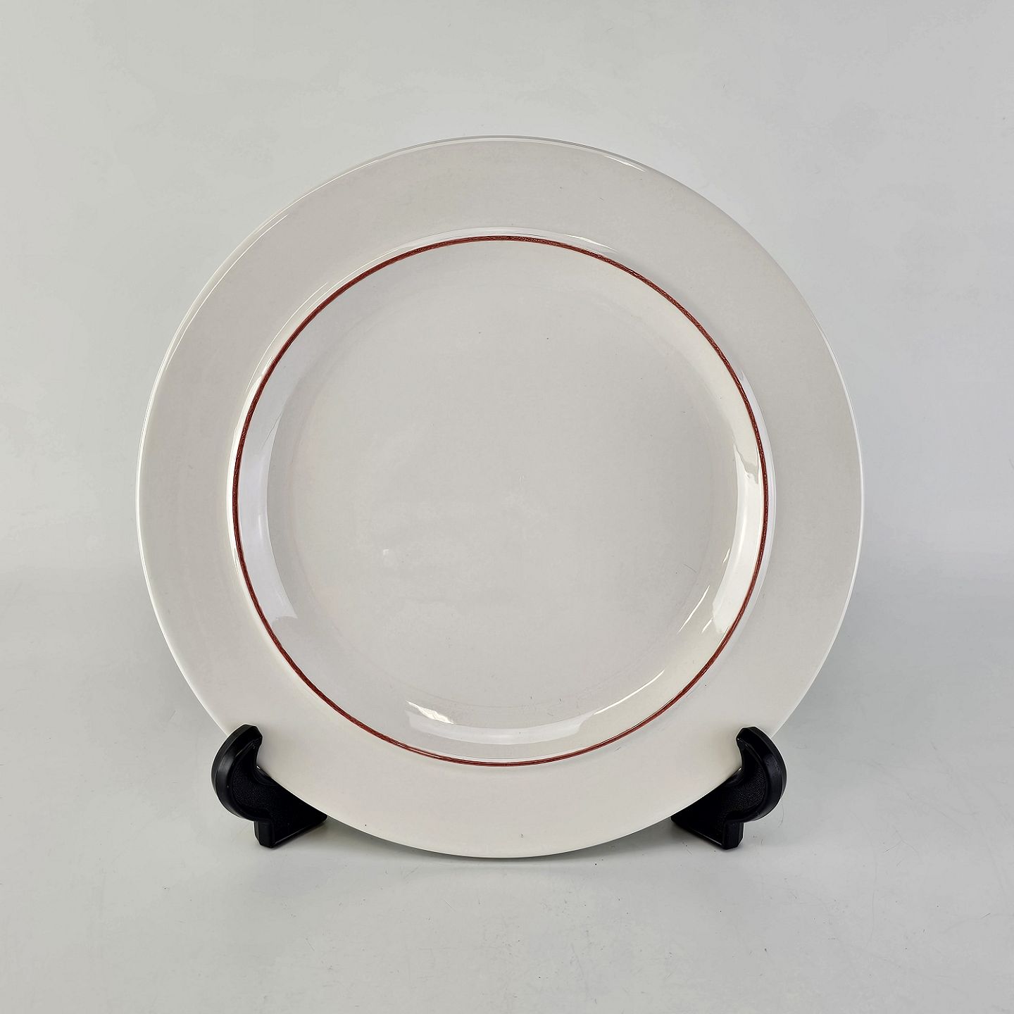 Frokosttallerken i fajance fra stellet 4 All Seasons med rød kant