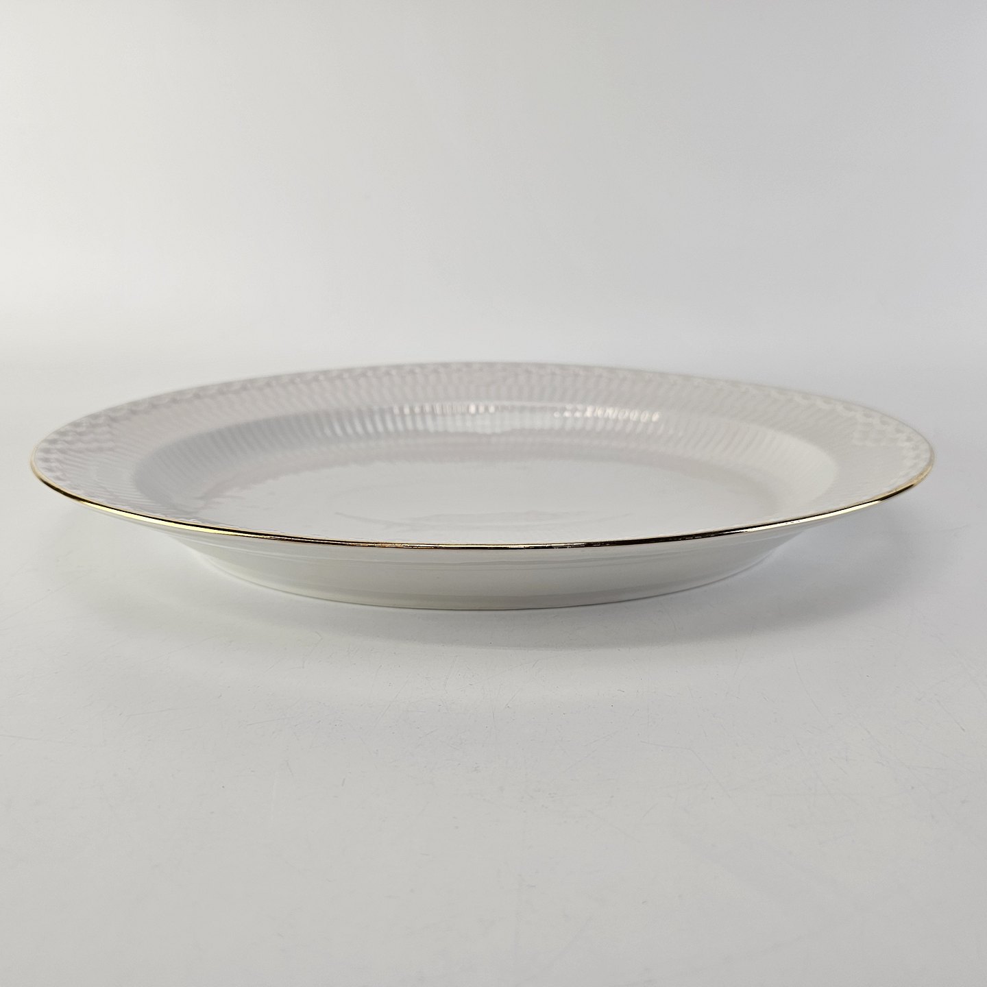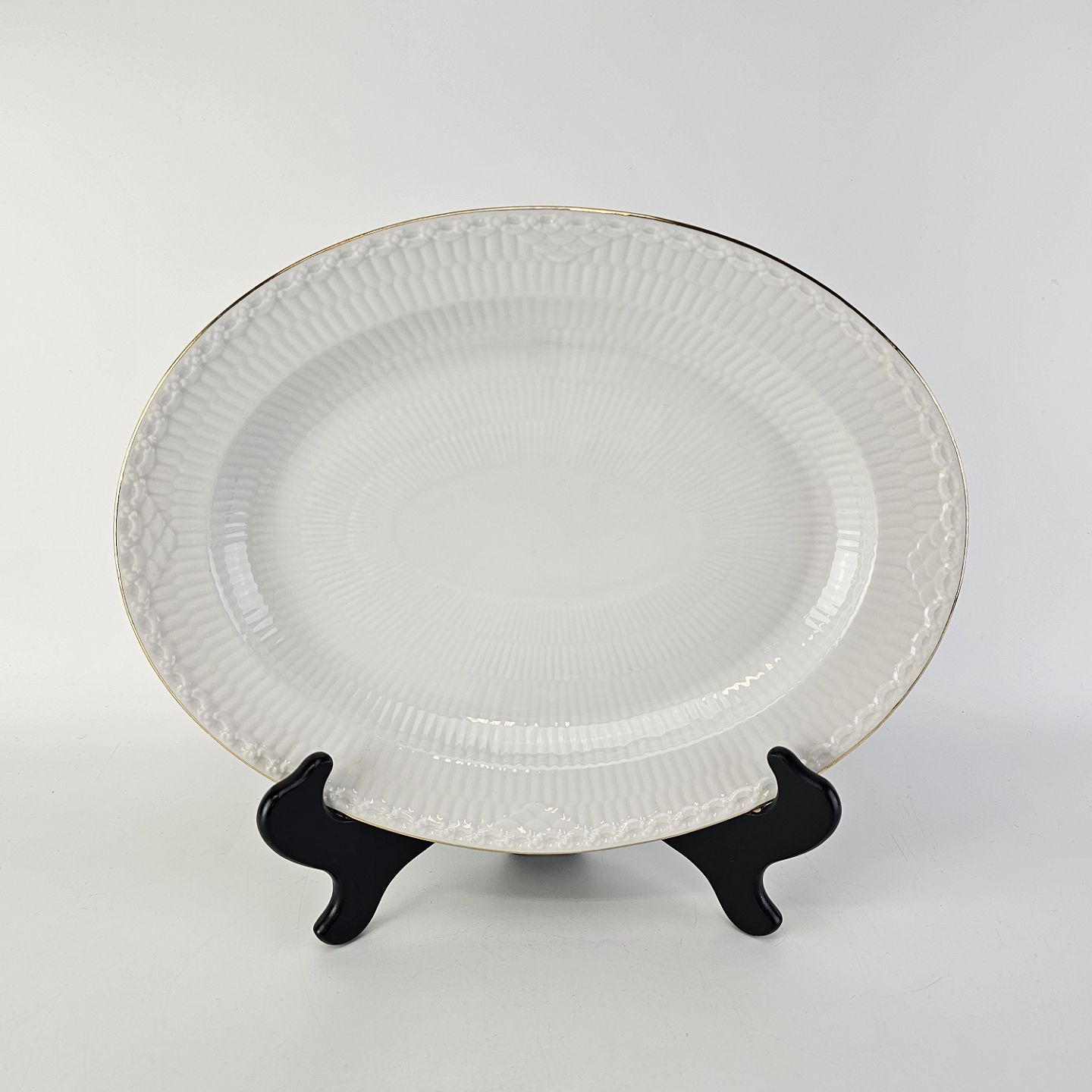 Stellet er i hvidt porcelæn med halvblonde dekoration og guldkant