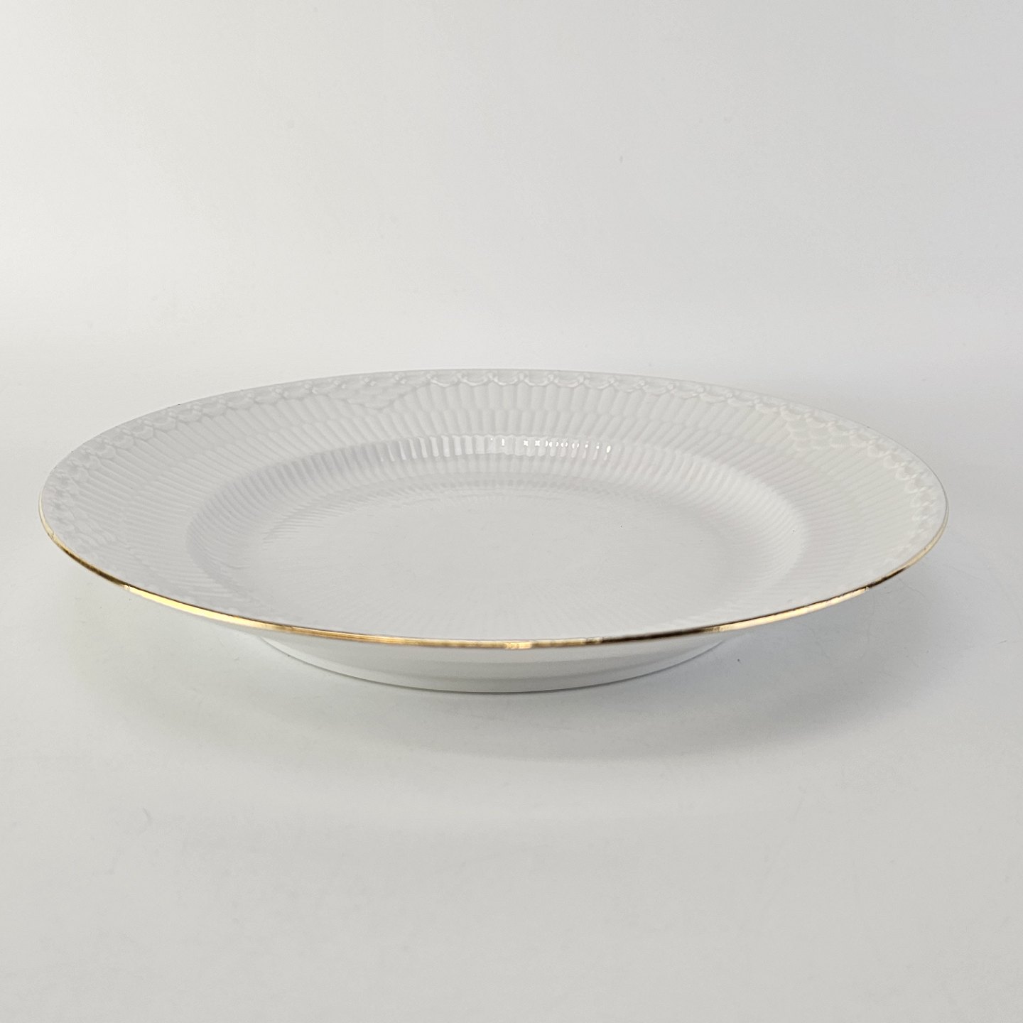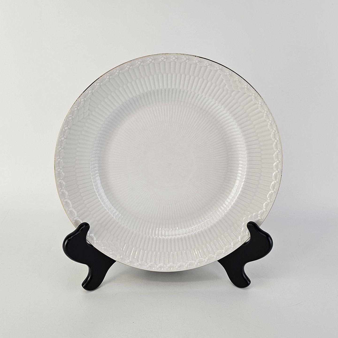 Stellet er i hvidt porcelæn med halvblonde dekoration og guldkant