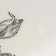 Service i glat cremefarvet porcelæn med grøn og sort kantstreg samt dekoration af blomster og grene i sort streg.