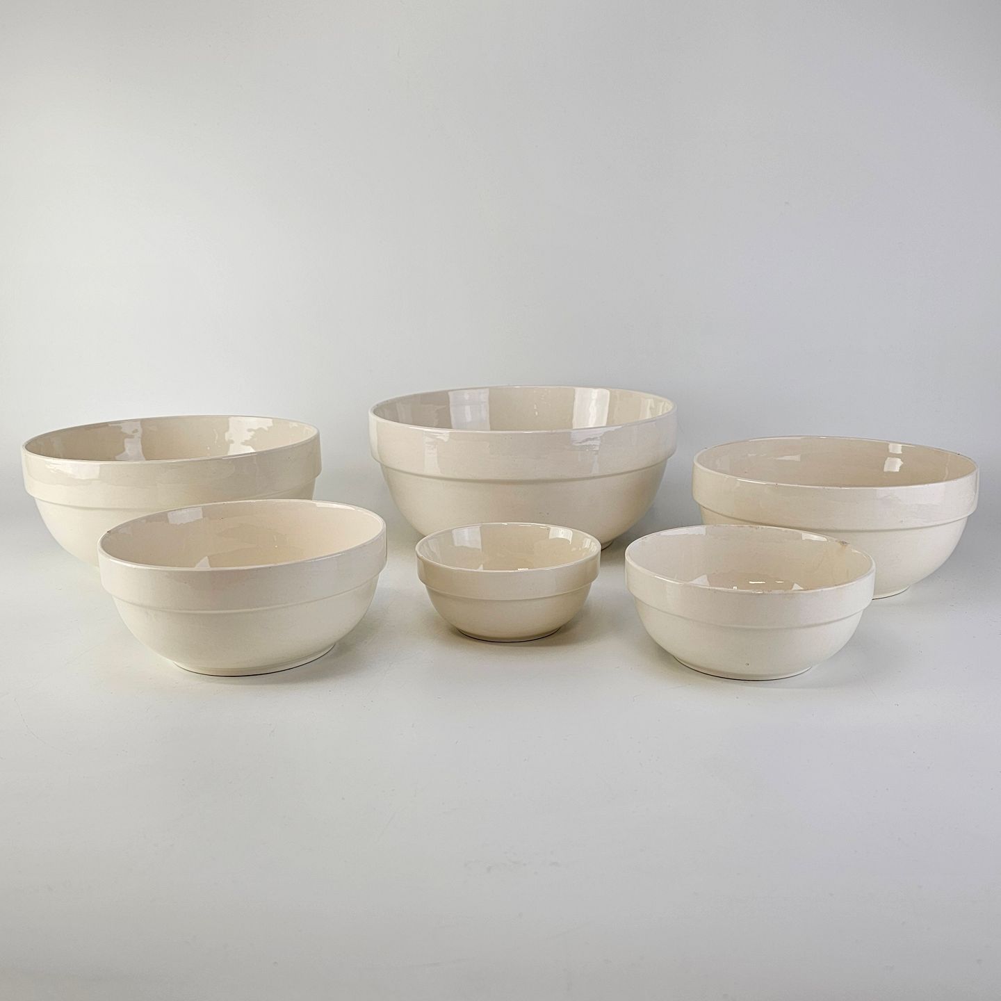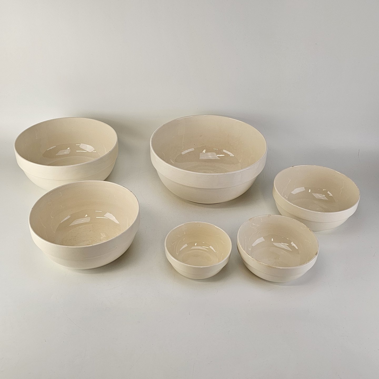 Sæt med seks skåle i cremefarvet fajance fra stellet Alma