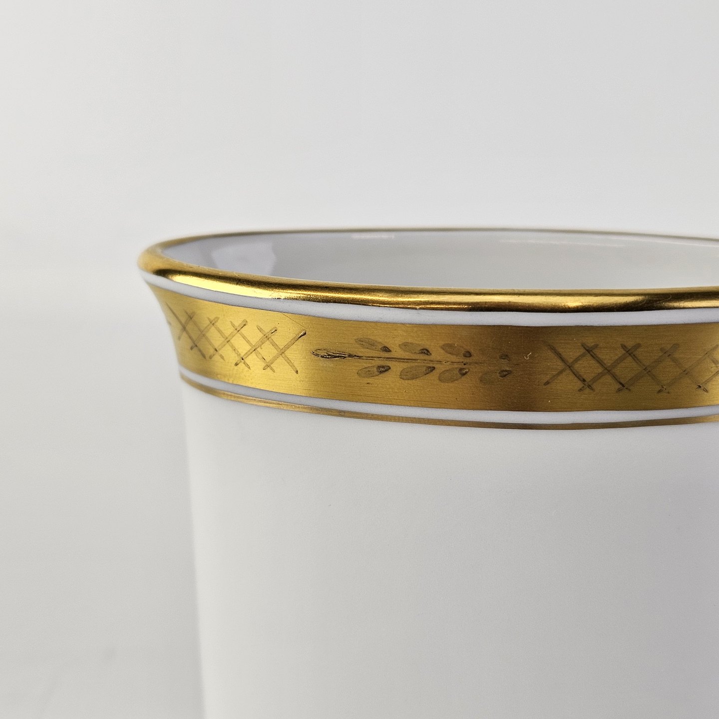 Stel nr. 607 er i hvidt porcelæn og har en guldkant med bladværk