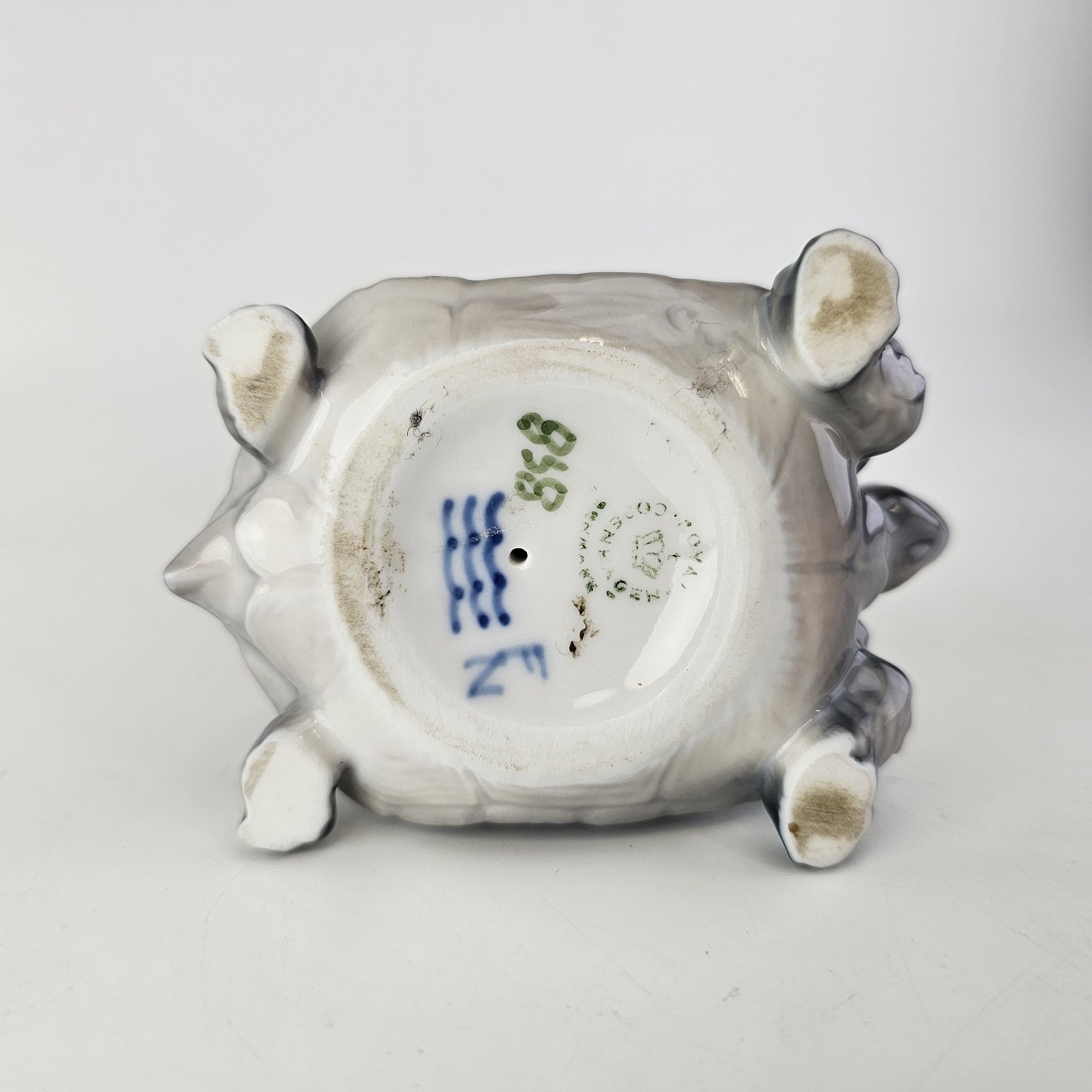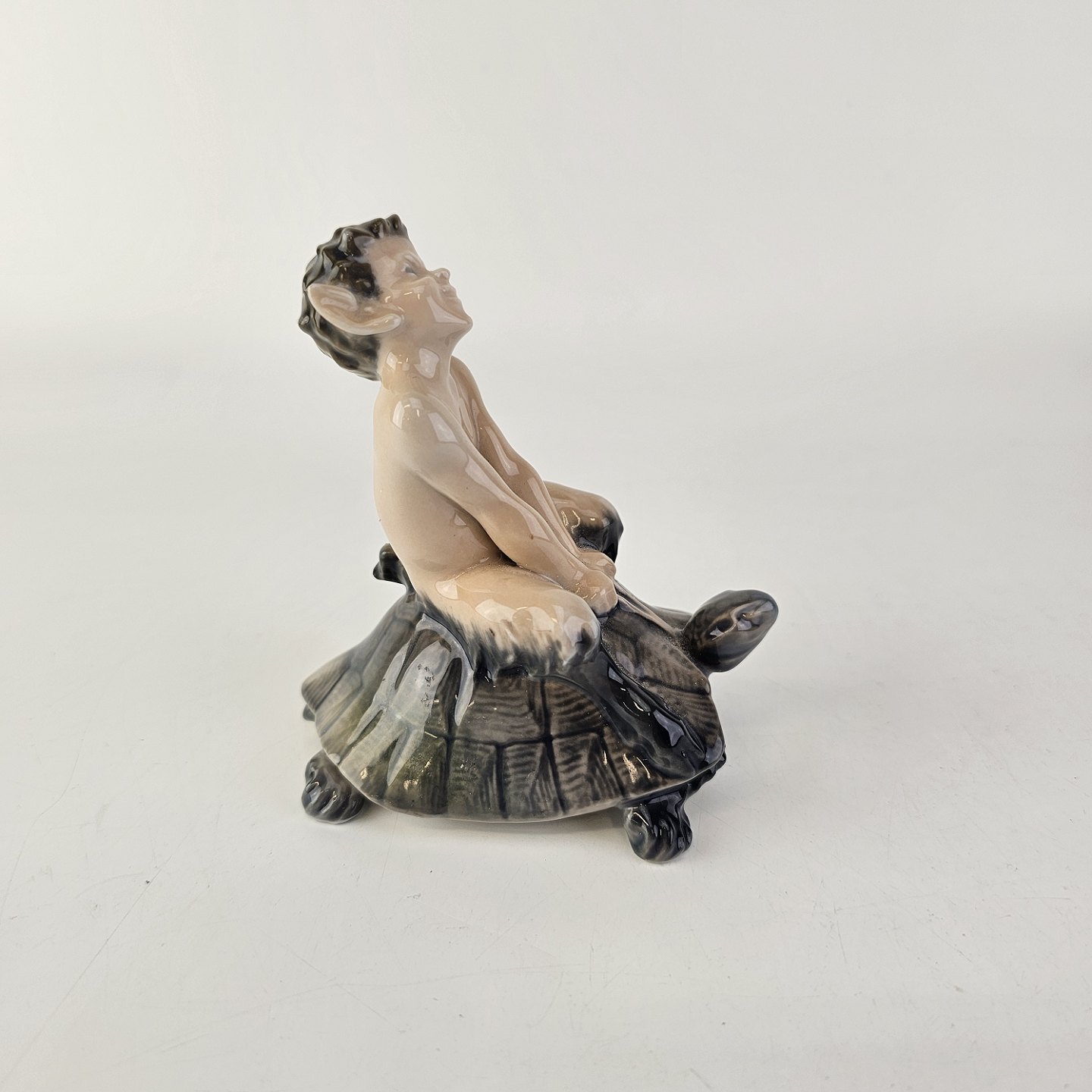 Kongelig figur i porcelæn med motiv af en faun som sidder på ryggen af en skildpadde