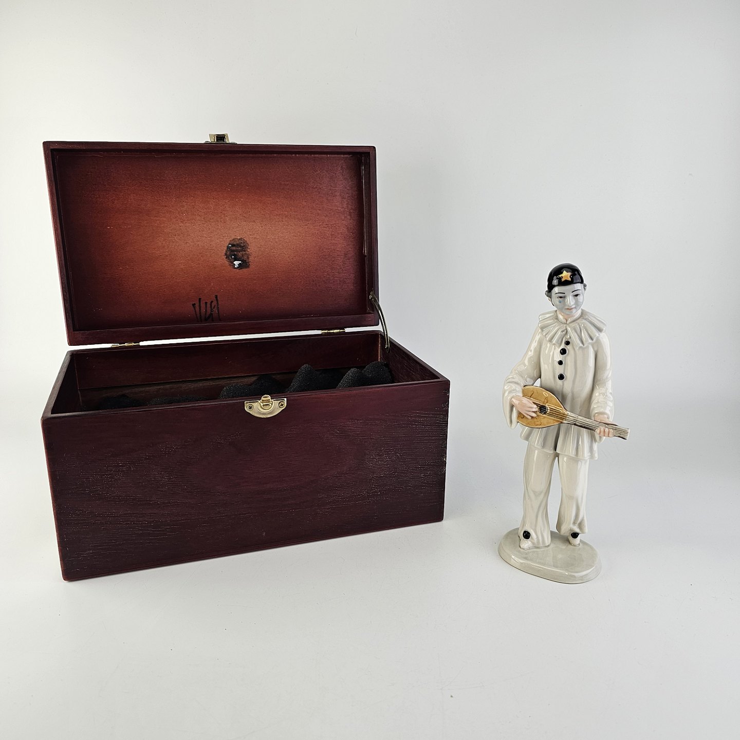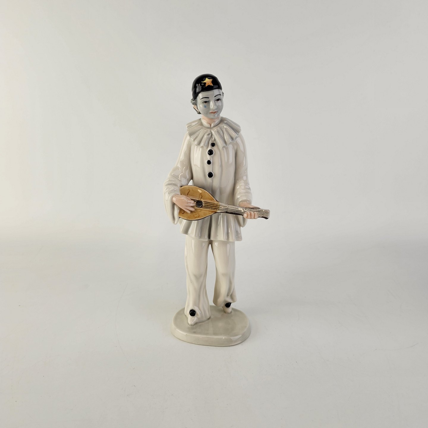 Figur i porcelæn med motiv af Pierrot fra La Commedia dell'Arte Italiana