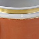 Service i glat hvidt porcelæn med orangerød dekoration over glasuren og guldkant