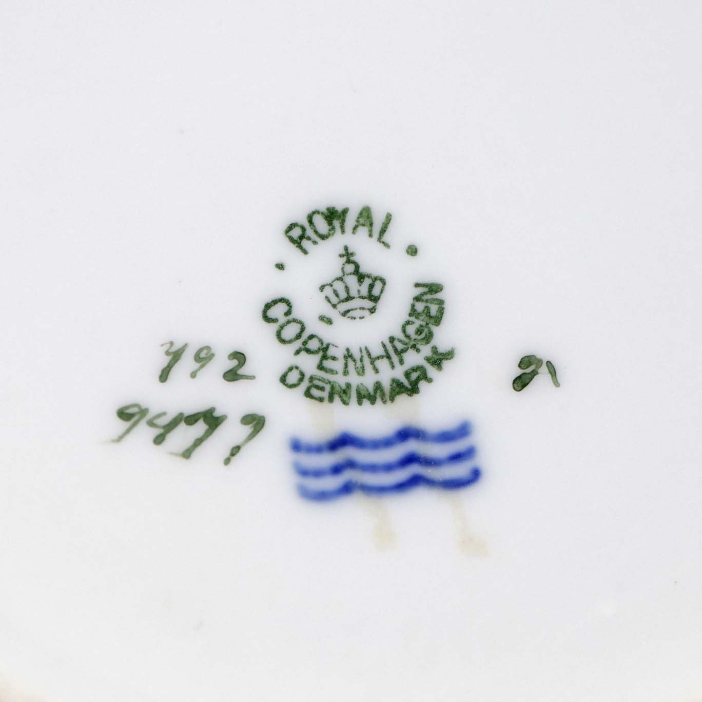 Skål med låg og hanke til sukker i kongelig porcelæn fra stellet Jægersborg. Nr. 792/9479