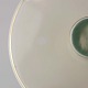 Stel i glat råhvidt porcelæn dekoreret med lysegrøn stribe og guldkant samt motiv af hjertegræs.