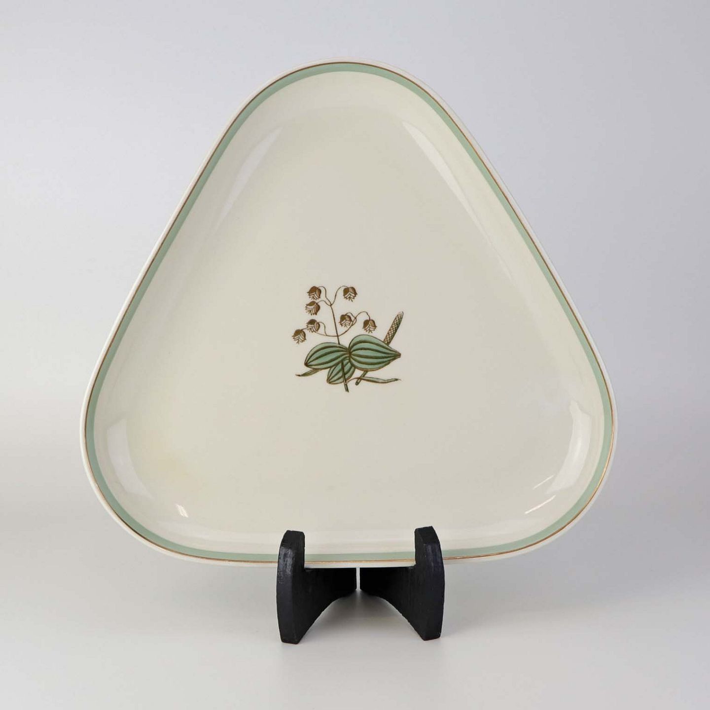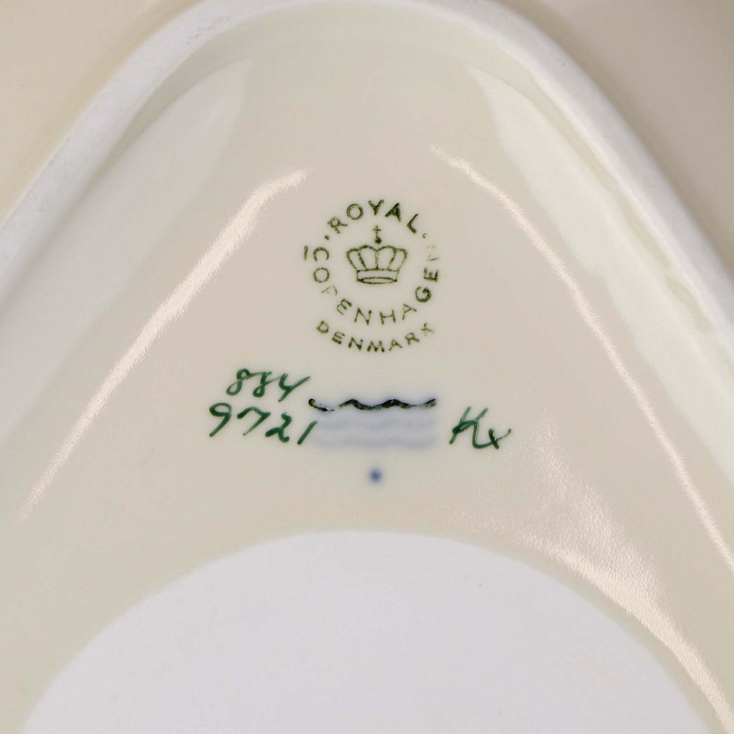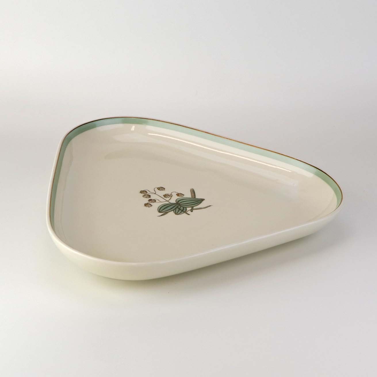 Trekantet serveringsfad i kongelig porcelæn fra stellet Hjertegræs. Nr. 884/9721