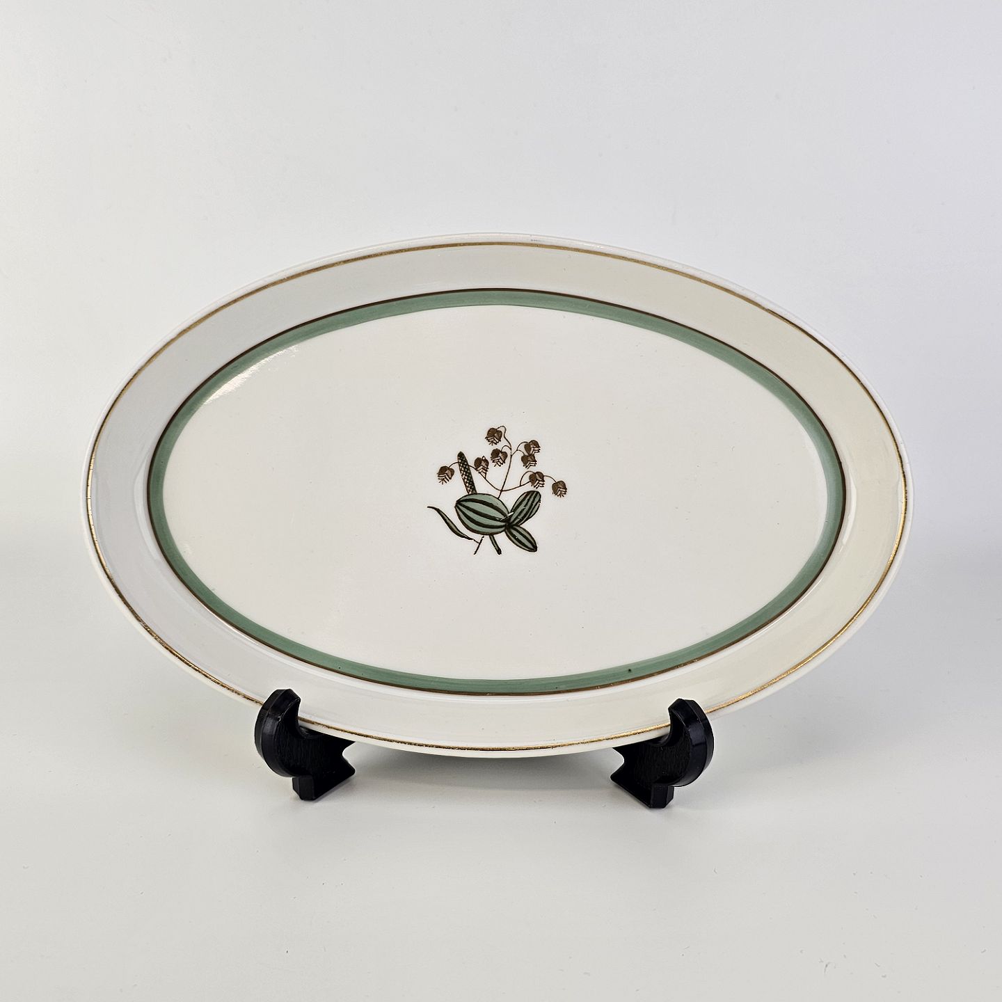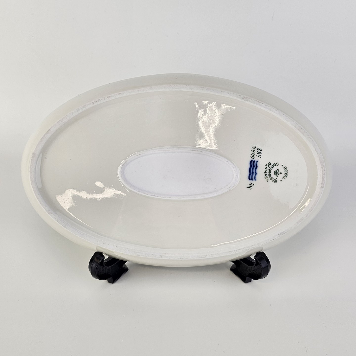 Lille ovalt fad i kongelig porcelæn fra stellet Hjertegræs. Nr. 884/9499