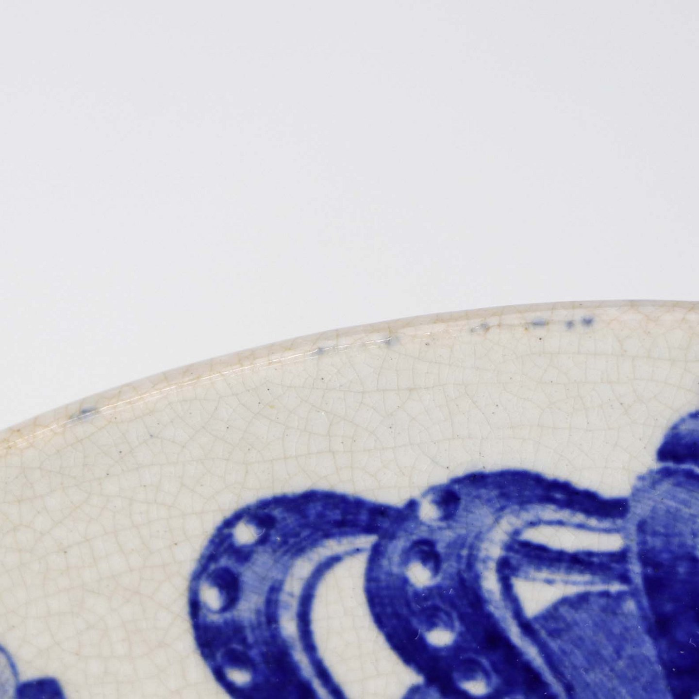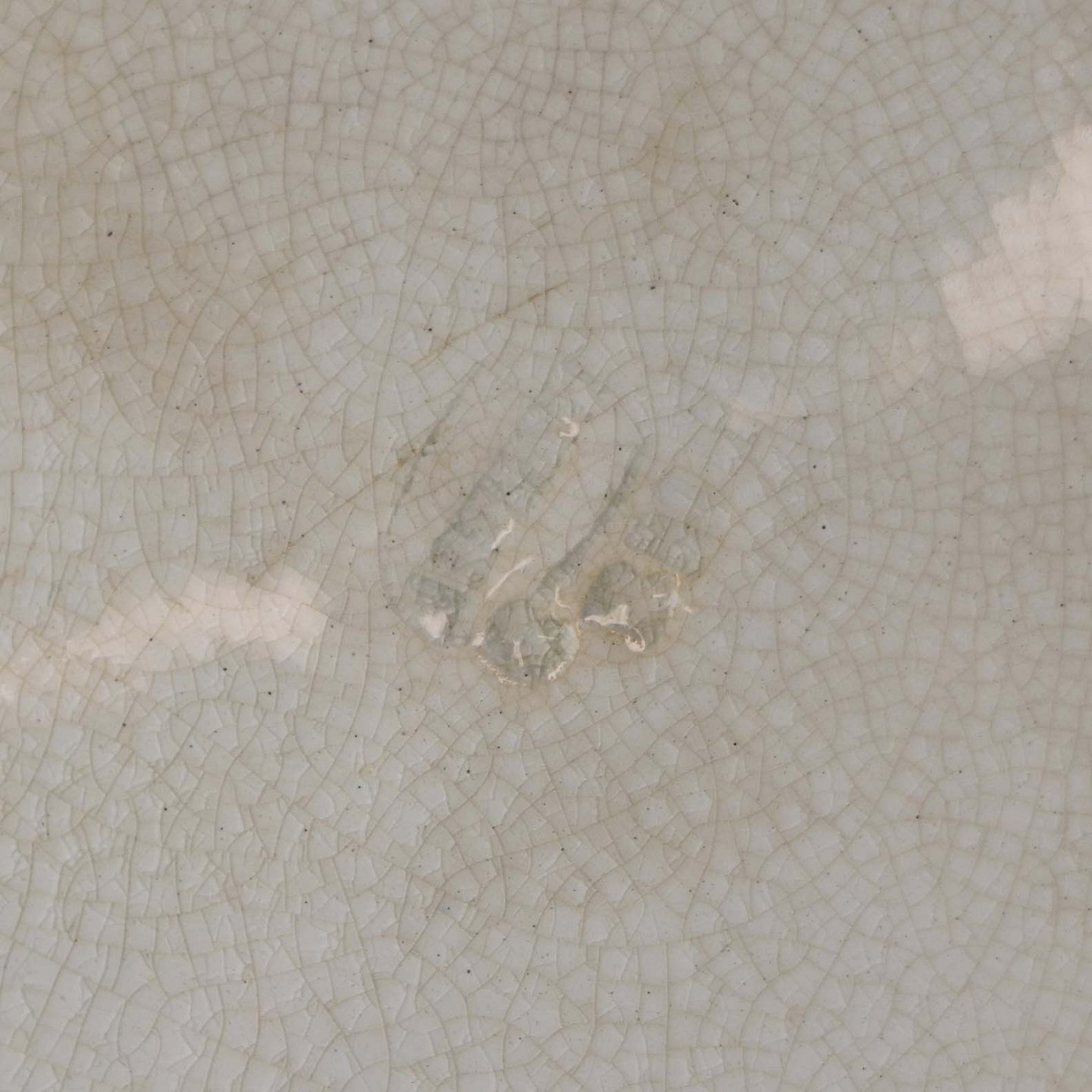 Fremstår med krakkeleringer i glasuren, letttere mørkninger langs kanten og på bagsiden.