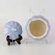Service i lyseblå fajance dekoreret med tynd hvid kant.