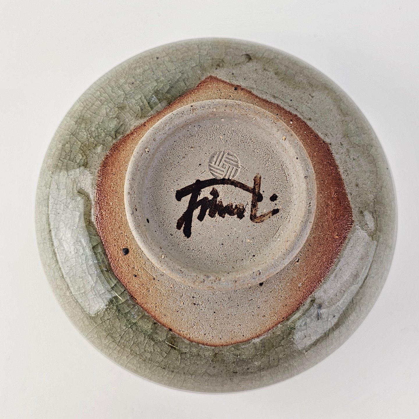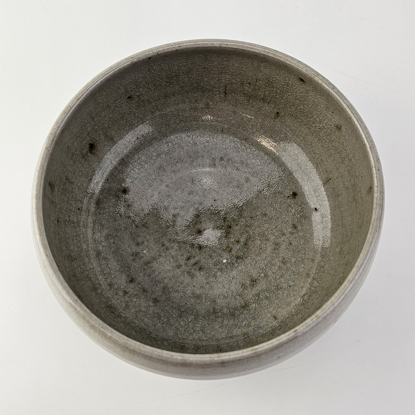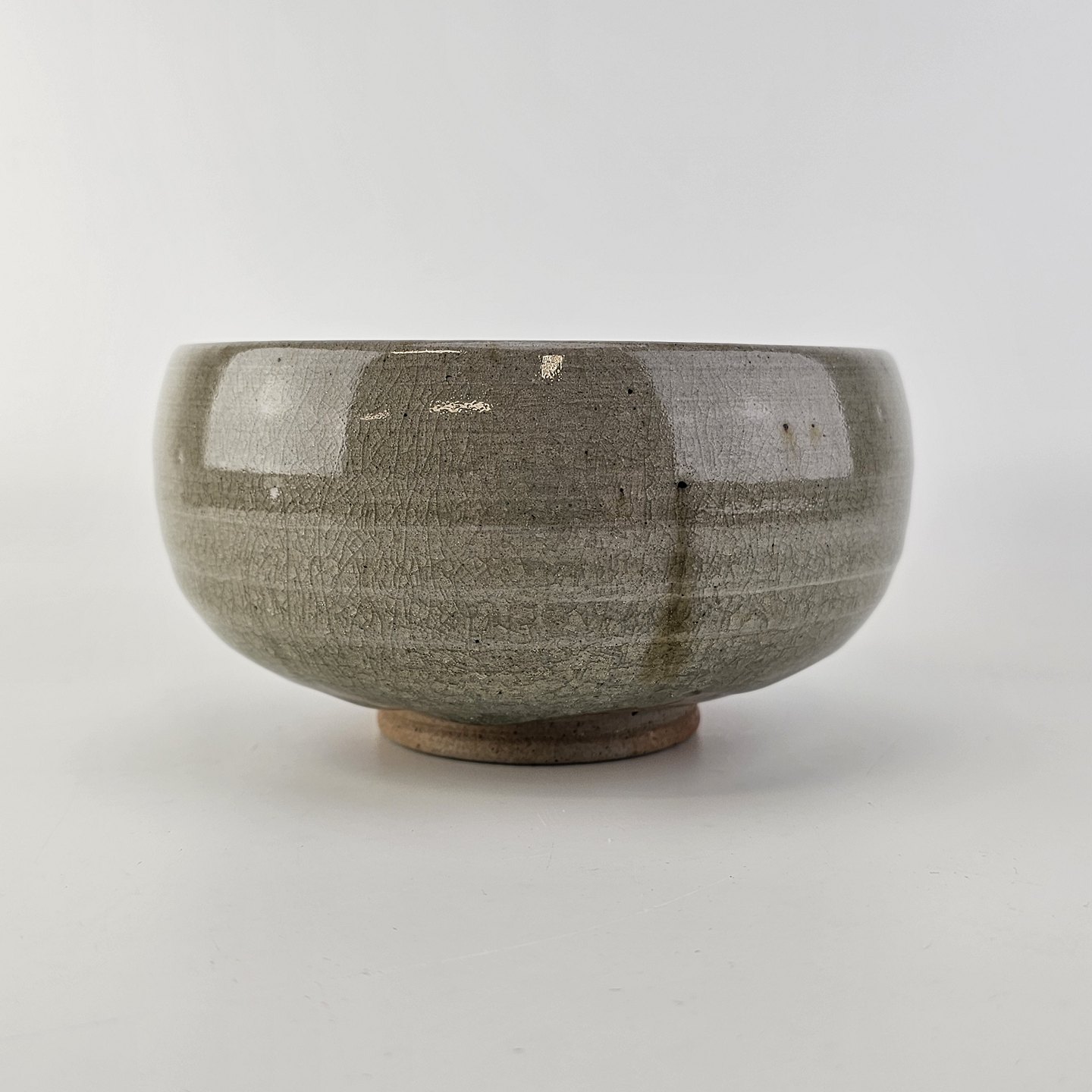 Grønlig keramik skål med krakelering.