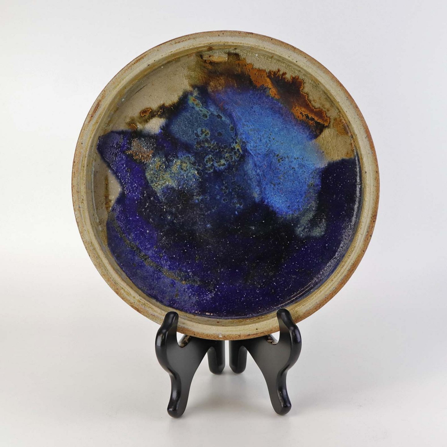Bordskål i keramik med glasur i blå nuancer på indersiden samt uglaseret yderside.