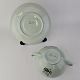 Stel i lysegrøn fajance med natur dekoration og flettet kant