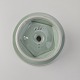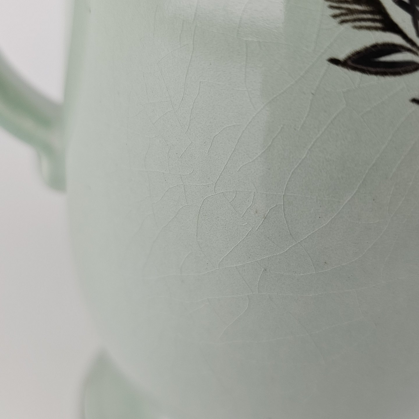 Stel i lysegrøn fajance med natur dekoration og flettet kant