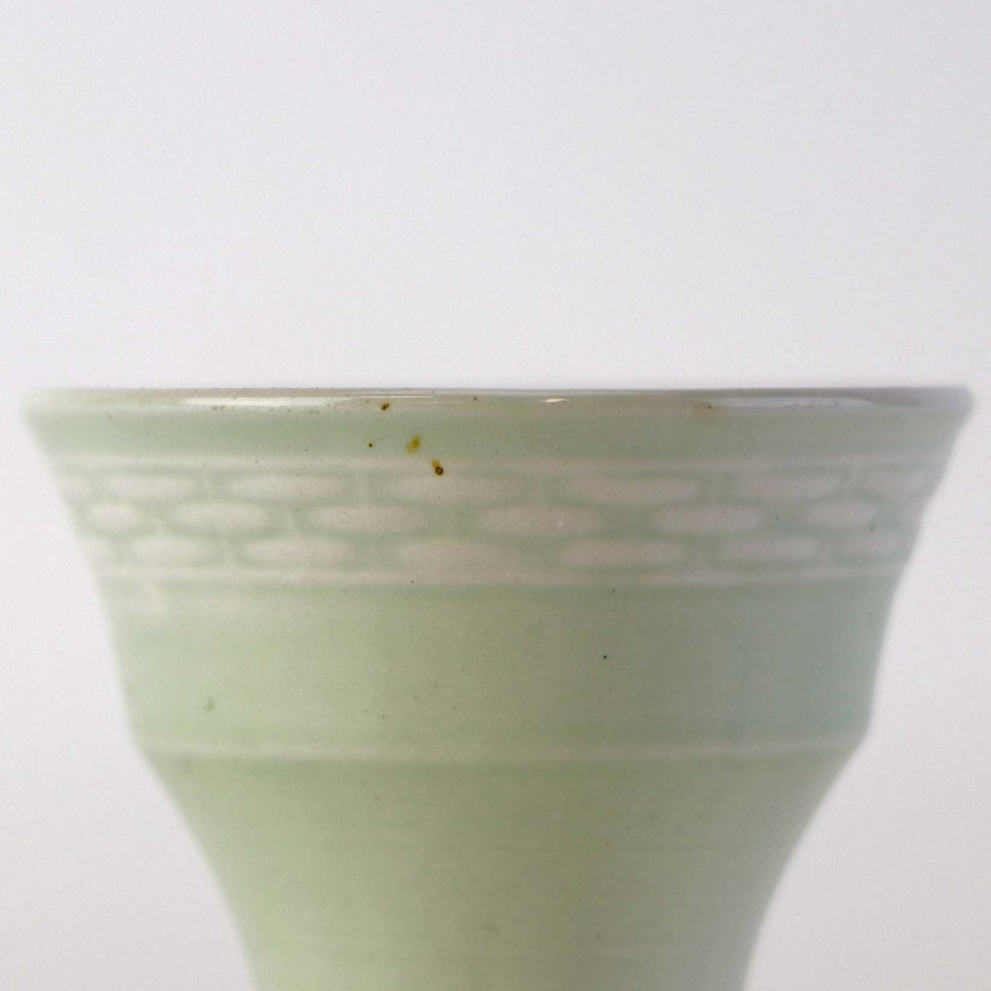 Fajancestel i stelform Viktoria II med fletværk i en lys mintgrøn farve med flettet dekoration langs kanten.