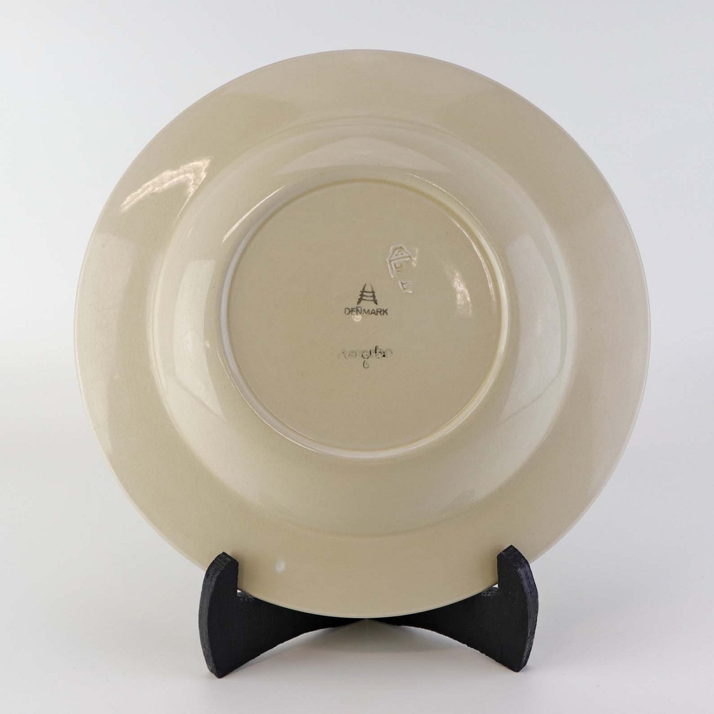 Lille dyb tallerken i fajance fra stellet Asserbo fremstillet i perioden 1933-1965
