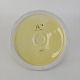Fajancestel i stelform C med dekoration i gule nuancer med grøn stribe.