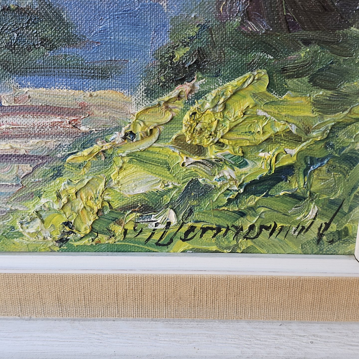 Oliemaleri på lærred monteret i træramme med naturmotiv