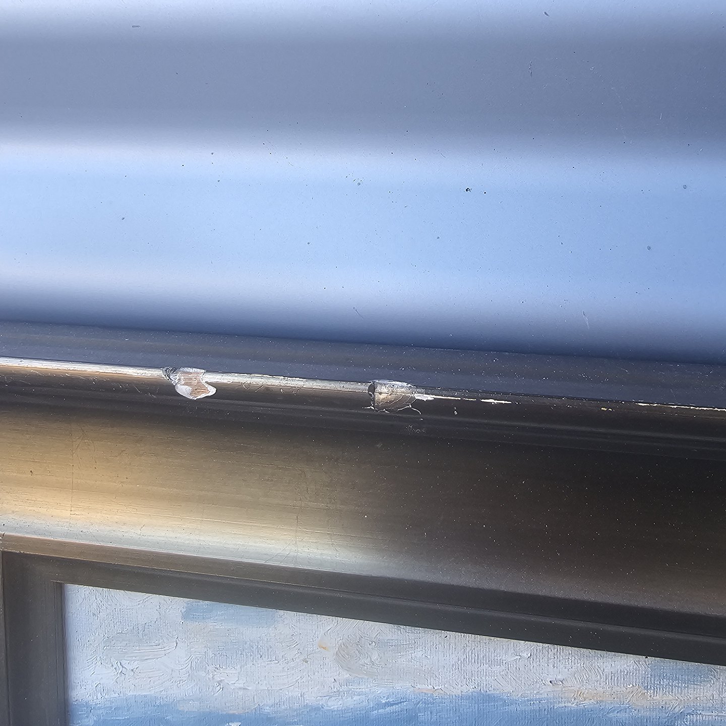 Oliemaleri på lærred monteret i bred træramme med landskabsmotiv