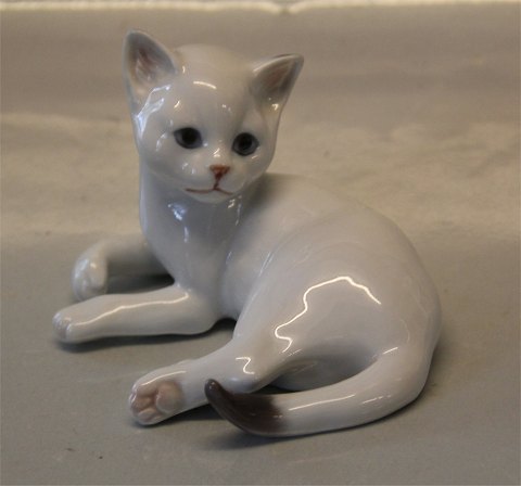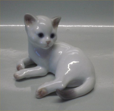 Beskrivelse: Bing & Grøndahl B&G 2504 Liggende hvid killing 8 cm RC # 504 I fin og hel stand. 2. sort pga af lille plet