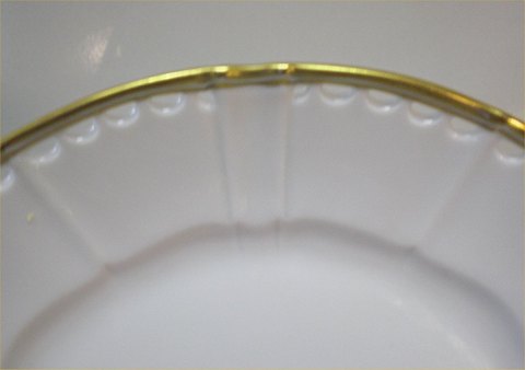 Bing & Grøndahl Offenbach 026 a Tallerken med gennembrudt kant 21.5 cm Hvidt kantet porcelæn med bred guldkant.Bing & Groendahl I hel og fin stand