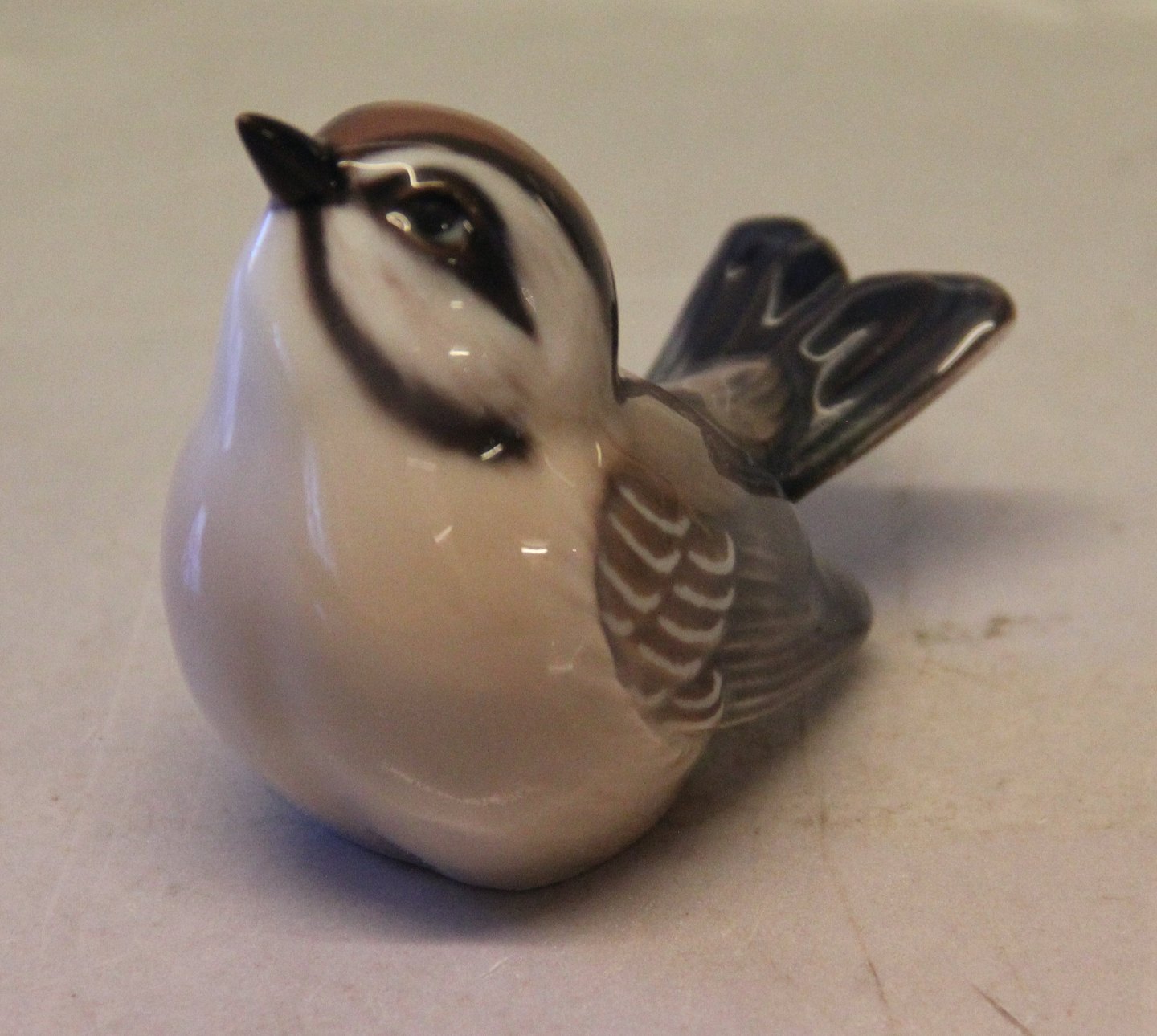 Beskrivelse: Dahl Jensen fugl 1230 Gråspurv 9,5 cm (DJ) 1. sortering. Mærket med kongelig krone og DJ Copenhagen i hel og fin stand.