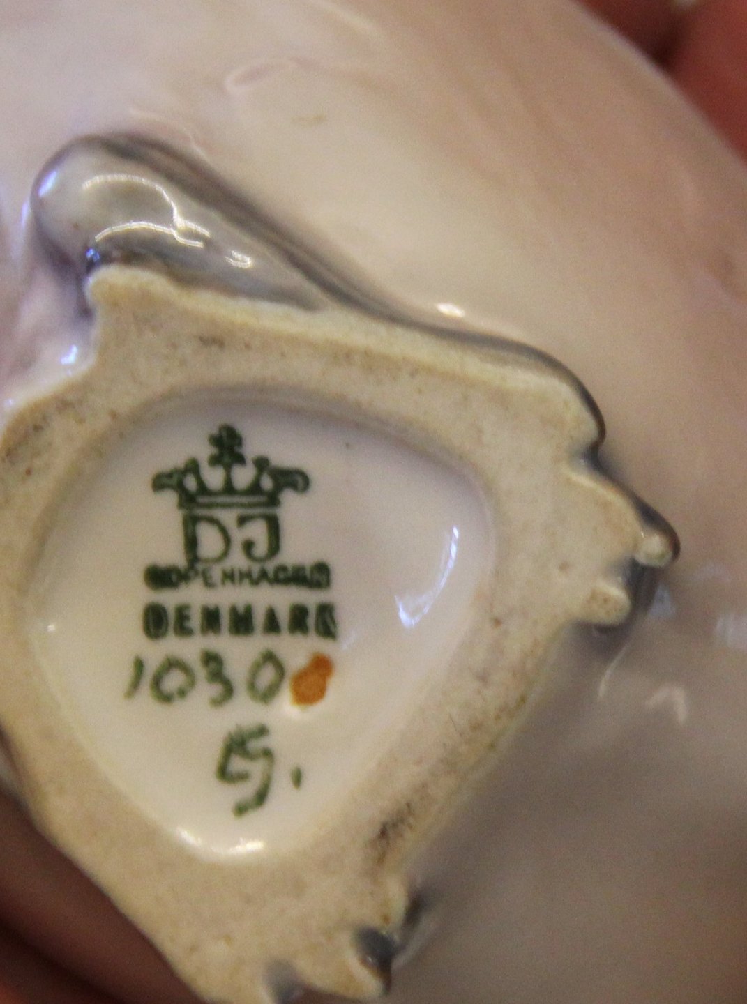 Beskrivelse: Dahl Jensen fugl 1030 Tornskade (DJ) 14,5 cm. Mærket med kongelig krone og DJ Copenhagen i hel og fin stand.